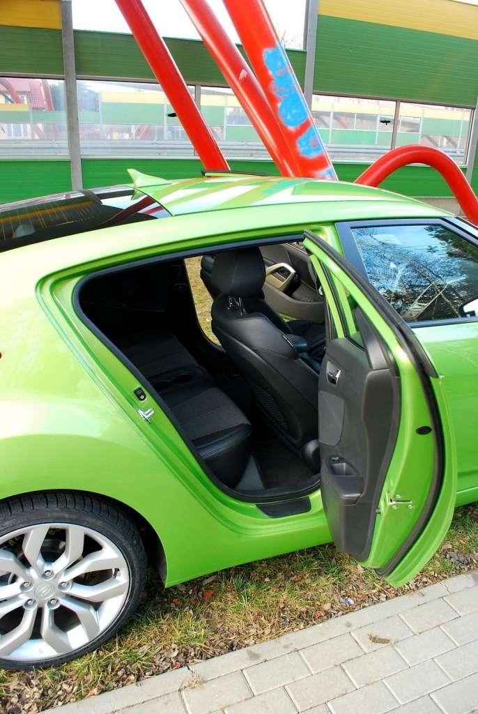 Co jest wypadkową wyżej wymienionych wymiarów? Miejsca nie ma przesadnie dużo ani na przednich fotelach, ani na tylnej kanapie. Powiedzieć, że jest ciasno też nie można. Już wiem – tu jest po prostu przytulnie. Wygodne fotele z przodu pozwalają na dopasowanie ich do swojej sylwetki, a dłuższa podróż nie kończy się urazami kręgosłupa. Pasażerowie siedzący z tyłu dzięki przeszklonemu kawałkowi klapy bagażnika, który pełni po części funkcję dachu, nie czują się jak w małej, ciasnej i ciemnej windzie. Jednak tych wyższych lepiej zaprosić do przodu – producent na klapie bagażnika umieścił ostrzeżenie o możliwości uderzenia w głowę wysokich delikwentów siedzących z tyłu. Co do bagażnika, to ma on pojemność 320 litrów, czyli więcej niż auto miejskie, ale mniej niż byśmy chcieli mieć w rodzinnym kompakcie.