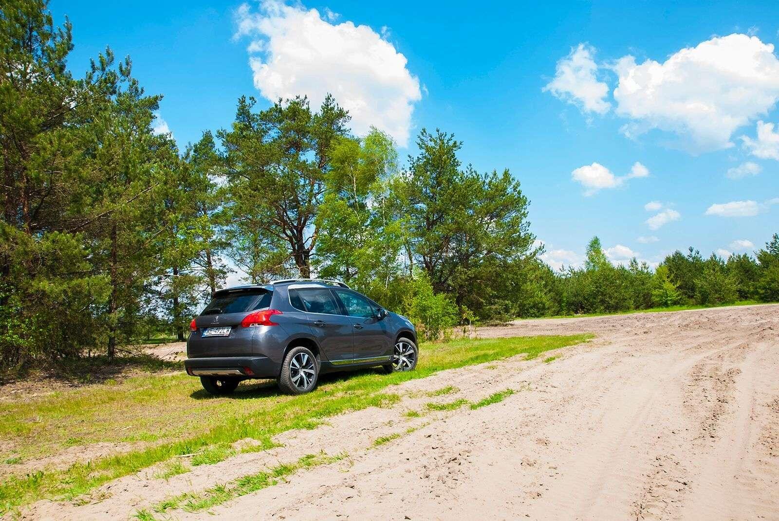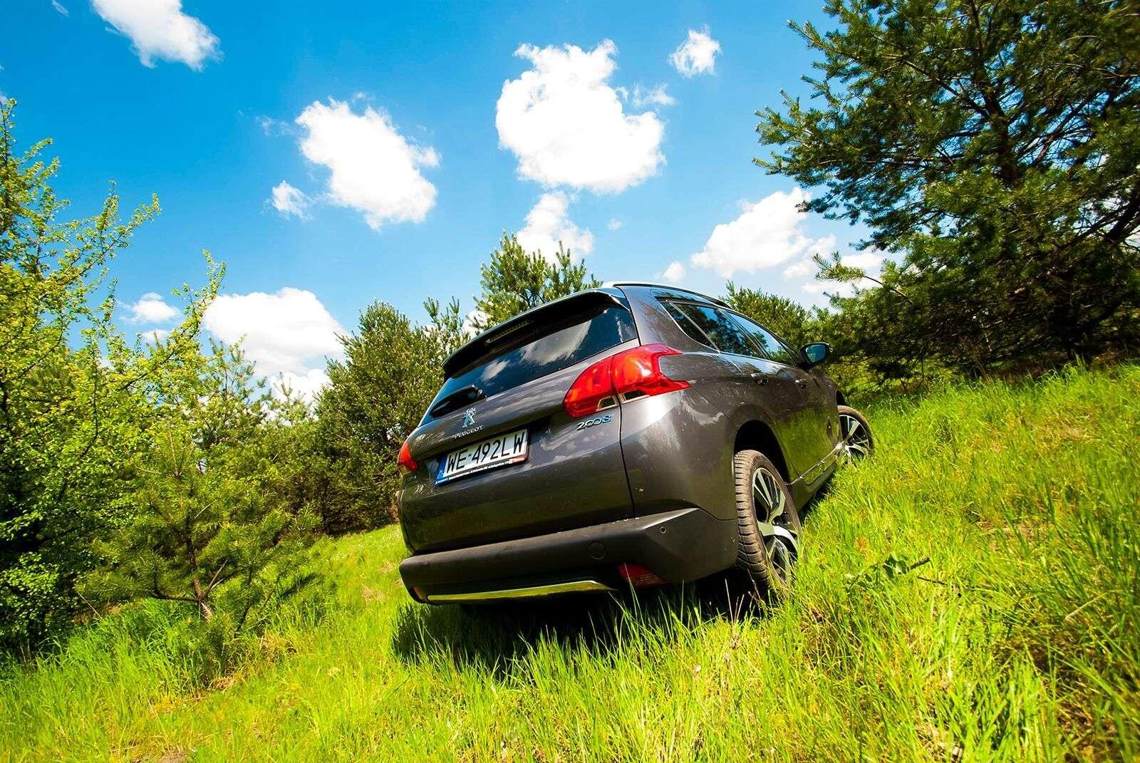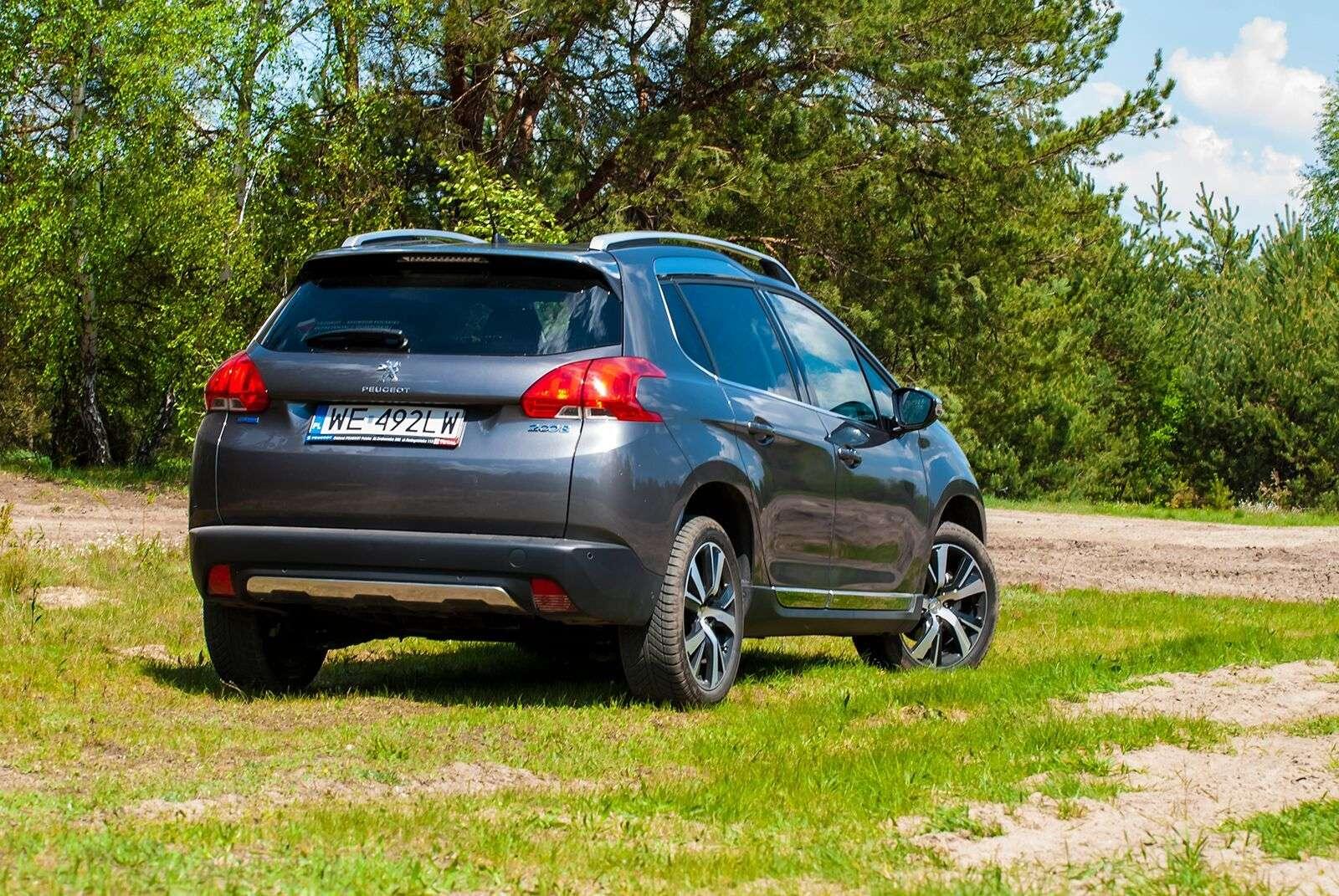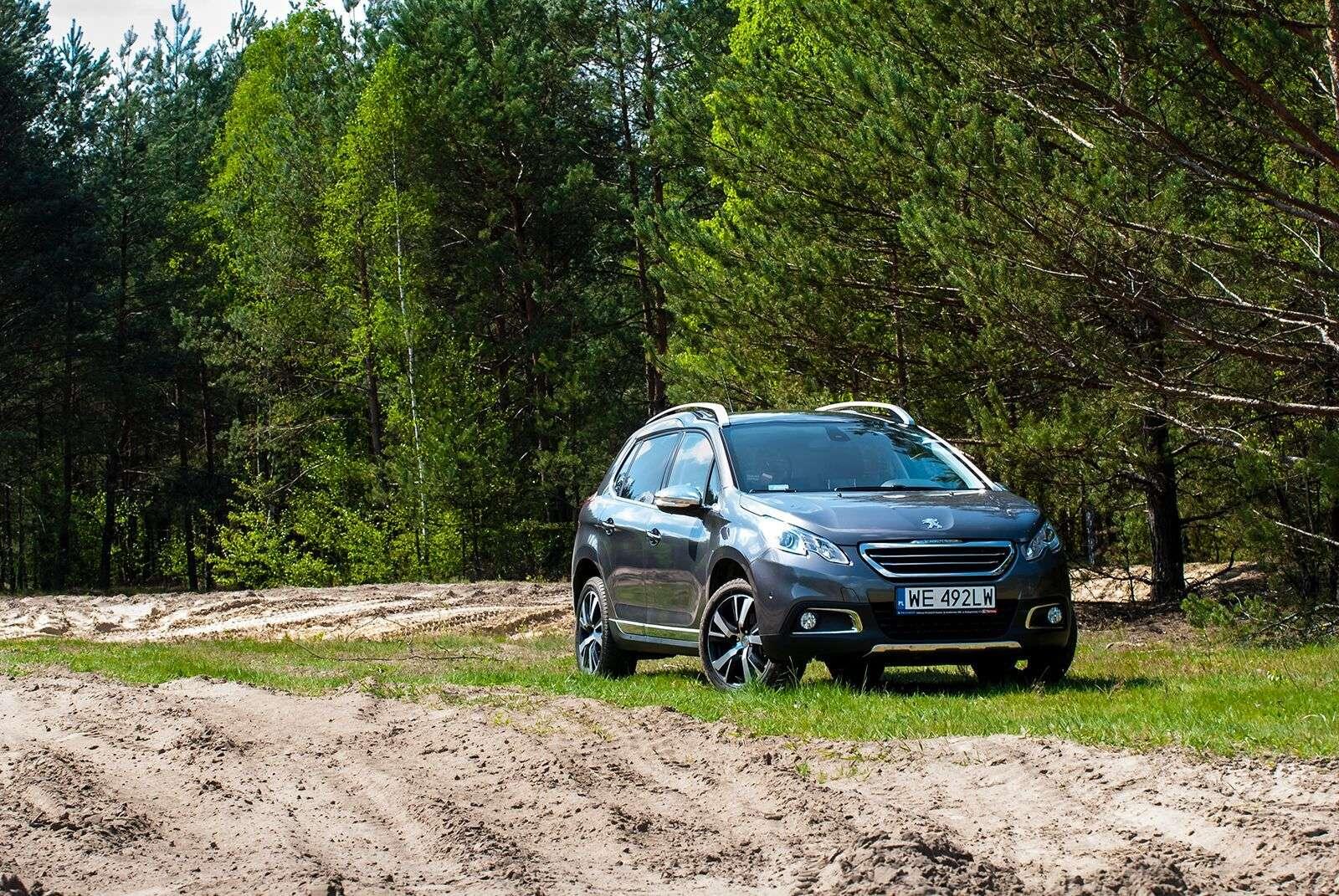Pod względem konstrukcyjnym model 2008 współdzieli płytę podłogową z takimi autami jak Citroen C3 czy choćby Peugeot 208, na którym oparty jest model z jednym „zerem” więcej. Patrząc na jego sylwetkę z boku, trudno jednak doszukać się podobieństw do jego mniejszego brata. Auto jest lekko podniesione i dość mocno napompowane. Prześwit wynosi 16,5 cm, więc wcale nie tak dużo, jak optycznie mogłoby się wydawać. Należy jednak pamiętać o przeznaczeniu tego auta – trudno mówić w jego przypadku o typowym off-road’zie. Ma po prostu poradzić sobie na polnej drodze czy niezbyt równym leśnym dukcie.