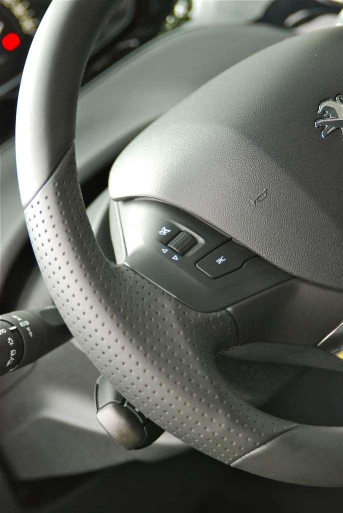 Po pierwsze miejscem, które zajmie kierowca. Co w nim innego? Inżynierowie z Peugeot sprawdzili co, bez odrywania wzroku od drogi, widzi potencjalny kierowca. Okazuje się, że jeśli chodzi o instrumenty pokładowe to niewiele, bo nasz kąt widzenia zawężony jest w pionie do około 20 stopni. Jak temu zaradzić? Można na przykład zastosować wyświetlacze typu „head up”, albo też jak Peugeot zrewolucjonizować deskę rozdzielczą, poprzez zmniejszenie koła kierownicy i położenie zegarów tak, aby widzieć je ponad wieńcem kierownicy. Proste, bo nie wymagające dodatkowych kosztów i genialne, bo dające w efekcie małą i przyjemną w użytkowaniu kierownicę. Co prawda przyzwyczajenie się do tego rozwiązania wymaga trochę czasu, ale mi osobiście taki układ nie przeszkadza, choć muszę przyznać, że nie byłem w stanie ustawić sobie kierownicy w taki sposób, żeby nie zasłaniała on choć po trochu wskaźników.
