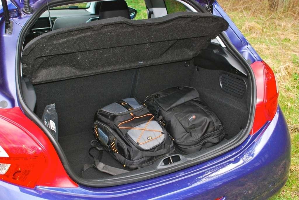 Kontynuując wątek wnętrza należy wspomnieć, że taki sam rozstaw osi, jak w modelu 207 oraz skrócenie długości nadwozia o 7 cm, nie skutkuje zmniejszeniem ilości miejsca dla pasażerów – wręcz przeciwnie. Zastosowanie cieńszych oparć przednich foteli oraz zmiana koncepcji projektu wnętrza przyczyniły się do uzyskania z tyłu 5 cm przestrzeni na kolana więcej, w porównaniu z modelem 207. Także bagażnik 208 jest większy – jego pojemność wynosi 311 litrów do wysokości tylnej półki (285 dm3 według standardu VDA), a po złożeniu tylnych siedzeń, które odbywa się poprzez jeden prosty ruch, nawet 1152 litry (1076 dm3 według standardu VDA).