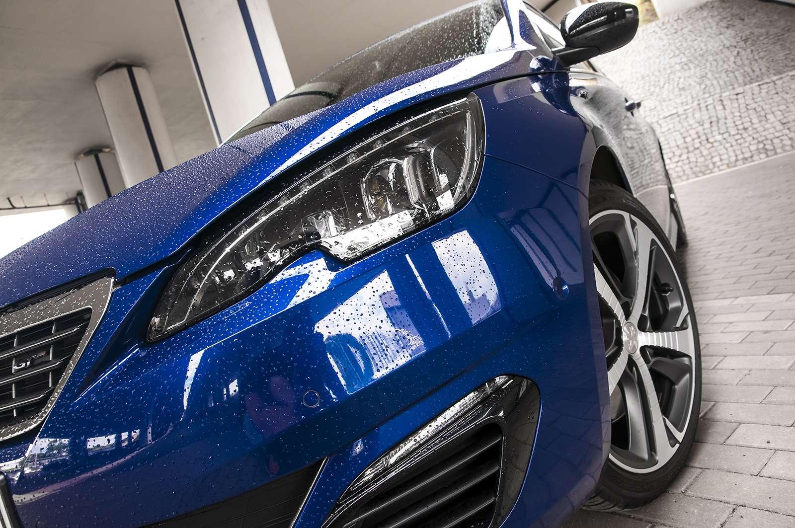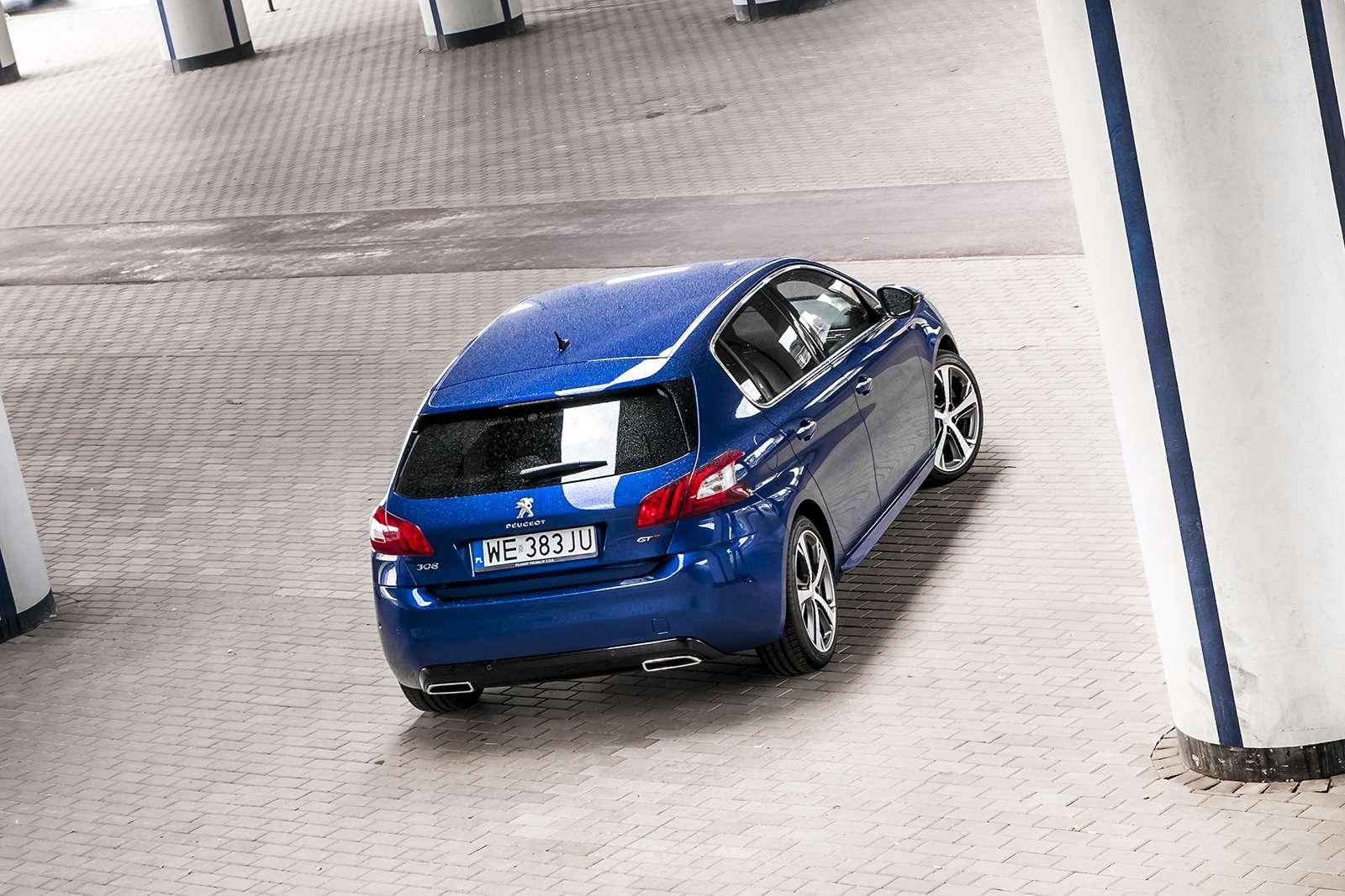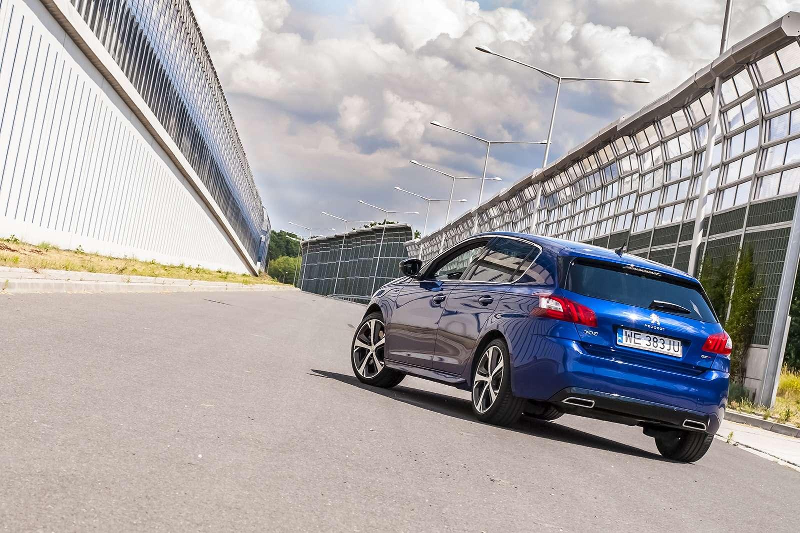 Na pierwszy rzut oka to po prostu niebieski, niepozorny hatchback. Nie znajdziemy w nim agresywnych „body kitów”, wlotów na masce czy krwistoczerwonych zacisków. Mimo to 308 GT jest pełen delikatnych oznak, że nie jest zwykłym autem. 18-calowe alufegli o oryginalnym wzorze, dwie końcówki wydechu, subtelne emblematy „GT”, czy dostępny jedynie dla tej wersji kolor lakieru Magnetic Blue, to jedyne zewnętrzne oznaki mocy drzemiącej pod jego maską. Najciekawsze jest to, że ten samochód nie krzyczy „patrzcie na mnie!”. Stoi grzecznie na światłach, nie rzucając się w oczy, po to by zaraz wystartować jak z procy i zostawić wszystkich daleko w tyle. Podobne wrażenia daje swojemu kierowcy. Nie jest to auto stricte sportowe, które szaleje i wyrywa się niczym bestia wypuszczona z klatki. Peugeot 308 GT jest samochodem (nie)zwykłym. Z jednej strony potrafi być grzecznym środkiem transportu, który w bardzo komfortowych jak na swój segment warunkach, dowiezie nas z punktu A do punktu B. Z drugiej zaś bardzo łatwo obudzić w nim duszę sportowca i rozpocząć szaleńczą gonitwę po ulicach miasta.