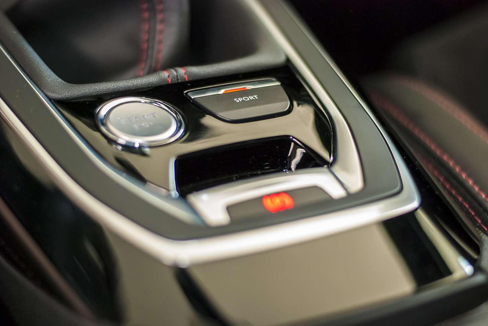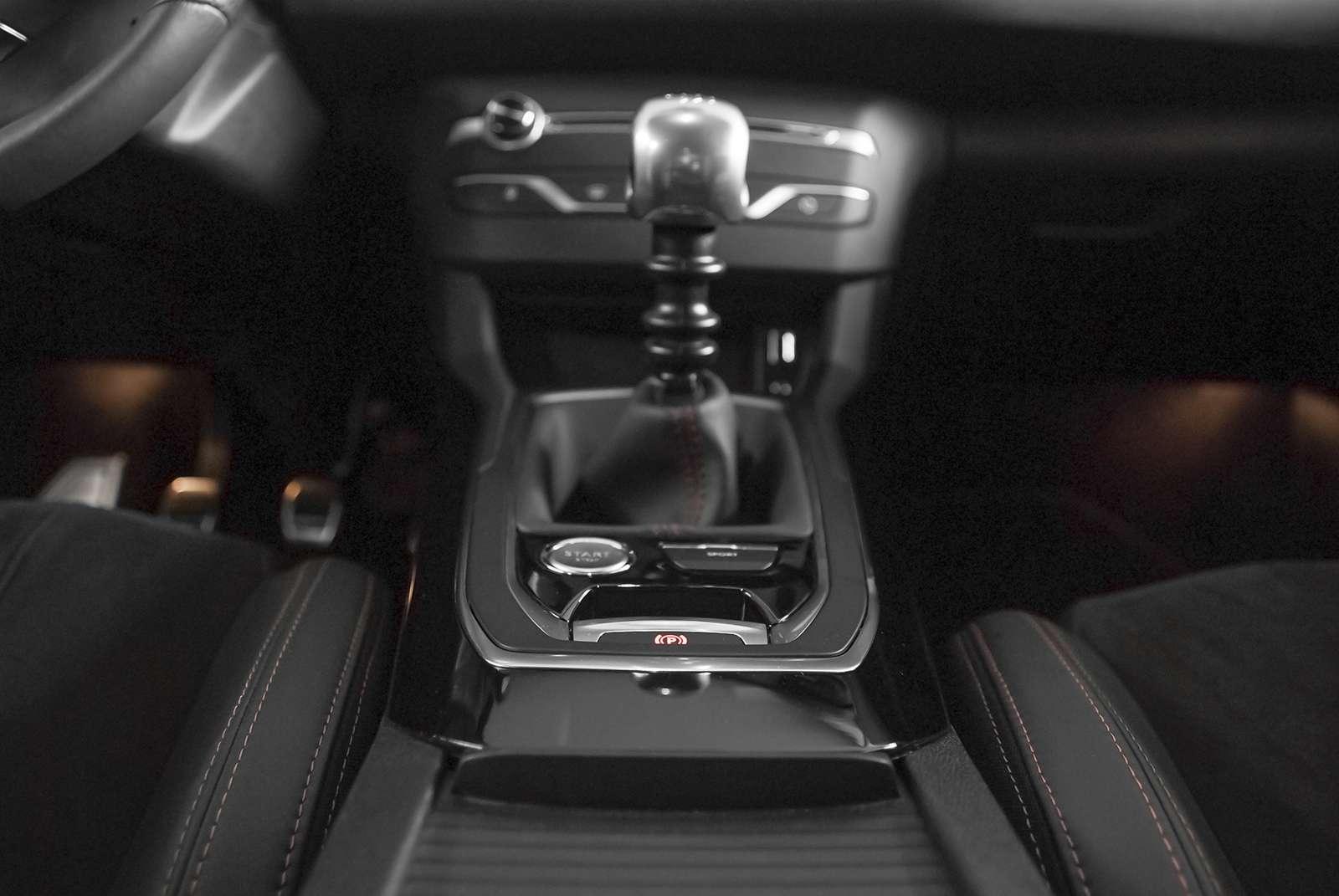 Po przełączeniu auta w tryb sport, nie tylko zegary zmieniają kolor na czerwony, ale na centralnym wyświetlaczu komputera pokładowego oczom kierowcy ukazują się również trzy paskowe wskaźniki. Power, Boost i Torque informują o chwilowym wykorzystaniu mocy, momentu obrotowego (maksymalnie 285 Nm) oraz doładowaniu turbosprężarki (max. 2,2 bara). Co ciekawe, te obiecujące parametry generuje doładowany silnik benzynowy o objętości skokowej jedynie 1.6 litra. Wskaźniki te pozwalają zaobserwować, że przy jeździe z prędkością 100 km/h na szóstym biegu, wykorzystywanych jest jedynie około 25 koni z całego stadka liczącego ich dokładnie 205. Dodatkowo w głębinach komputera pokładowego znajdziemy wskaźnik informujący o przeciążeniach działających na pojazd podczas dynamicznego przyspieszania, hamowania czy pokonywania zakrętów. Przełączenie auta w tryb sportowy sprawia również, że do uszu kierowcy dociera basowy, rasowy pomruk układu wydechowego. Niestety to przyjemne dla duszy mruczenie zachęcające do dynamicznej jazdy nie płynie z serca samochodu, a z jego głośników. Na zewnątrz pojazdu akustycznie nic się zmienia po wciśnięciu kuszącego przycisku z napisem „sport”. Jeżeli chodzi o charakterystykę pracy silnika, to tryb ten – jak sama nazwa wskazuje – czyni go jeszcze bardziej dynamicznym. Komputer sterujący nie pozwala wskazówce obrotomierza zejść zbyt nisko, aby w każdej chwili możliwe było zaproszenie wszystkich ponad 200 koni do zabawy. Dodatkowo wspomaganie kierownicy zaczyna stawiać delikatnie większy opór, dzięki czemu kierowca jeszcze lepiej jest w stanie wyczuć samochód.