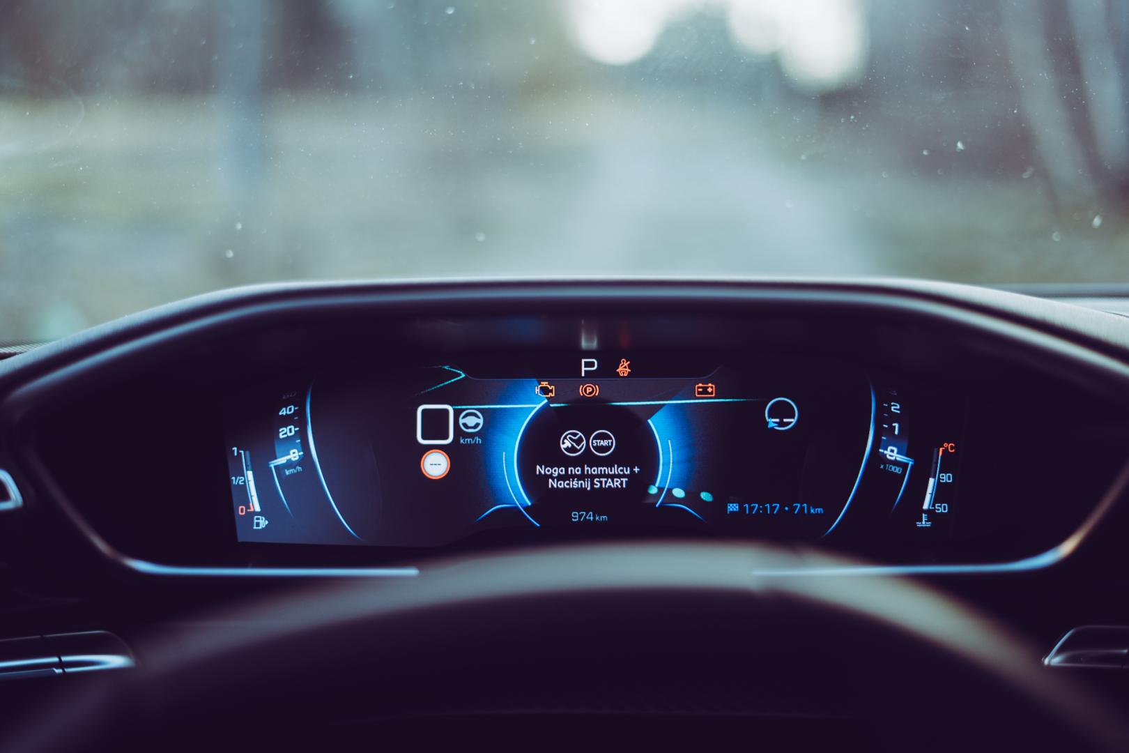 Na konsoli zobaczymy też oczywiście duży ekran systemu multimedialnego z ładnymi przyciskami. W całej kabinie panuje elegancki minimalizm, ale jest też „peugeotowsko” futurystycznie – i to bardzo duży plus.