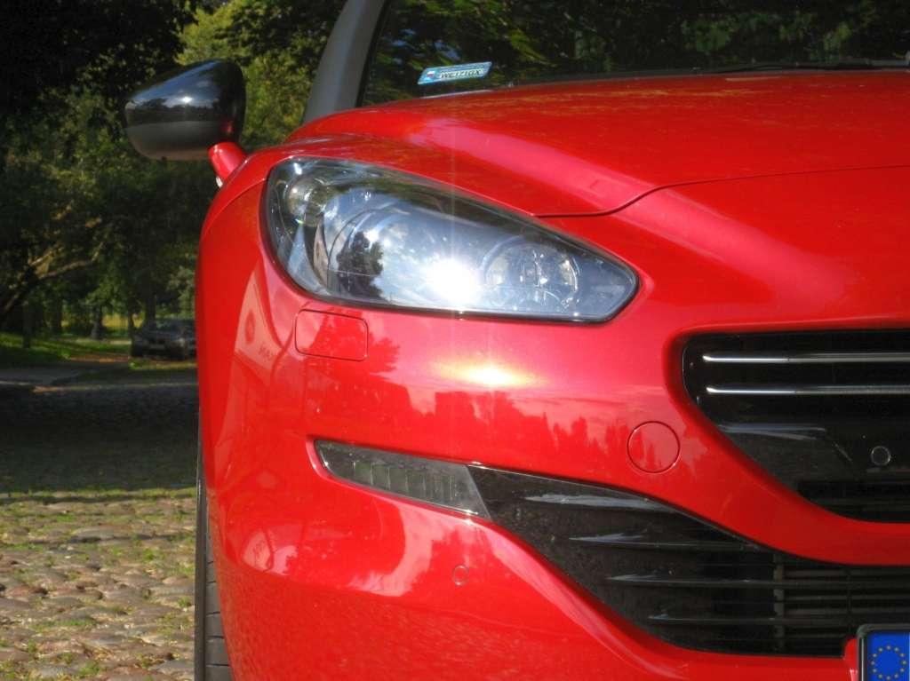 Na potrzeby naszego testu z Disneyowskiej Pięknej zróbmy Pięknego, bo przecież Peugeot to mężczyzna, ale nie goguś. Popatrzcie tylko na te kształty, te proporcje i odważną, pełną fantazji kreskę projektantów. RCZ-R to znakomicie wyrzeźbiony atleta, sprinter czekający w blokach na sygnał startu. Pochylony nisko nad ziemią z oczami wpatrzonymi w tor i rysująca sie w oddali metę. To auto narysowane jest według najlepszych prawideł sztuki designu samochodów sportowych. Szeroki, niski, z wielkimi w stosunku do ogólnych proporcji kołami (19 cali). Do tego smaczki w postaci czerwonych zacisków klocków hamulcowych. Nienachalnego, wpisującego się w bryłę auta tylnego spoilera i dwóch, słusznej średnicy rur wydechowych dopełniają wizerunku będącego w znakomitej formie sportowca. Jeszcze przetłoczenia na stromo opadającemu ku tyłowi dachu, jakby to była kabina myśliwca, nie cywilnego auta i klasa sama w sobie: gładkie przejście od dachu do tylnej, pozbawionej wycieraczki szyby. Nic dodać nic ująć, RCZ-R jest to prostu obłędnie pięknym, przyciągającym spojrzenia i zapadającym w pamięć autem.