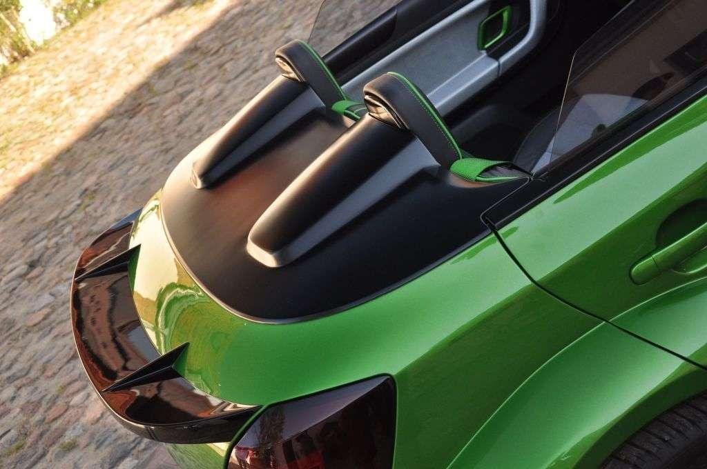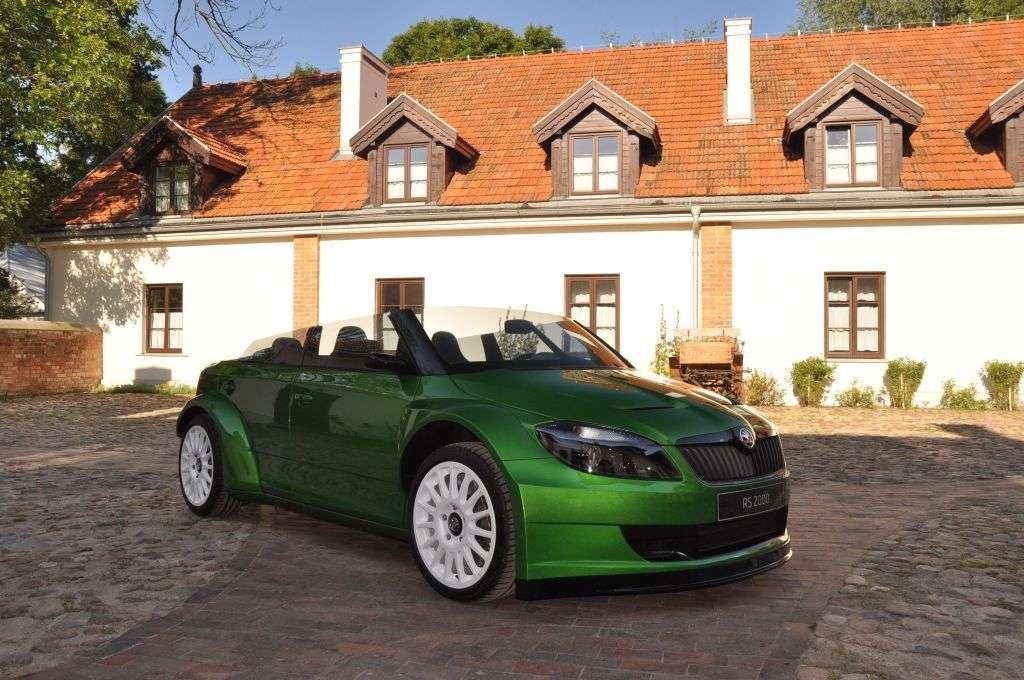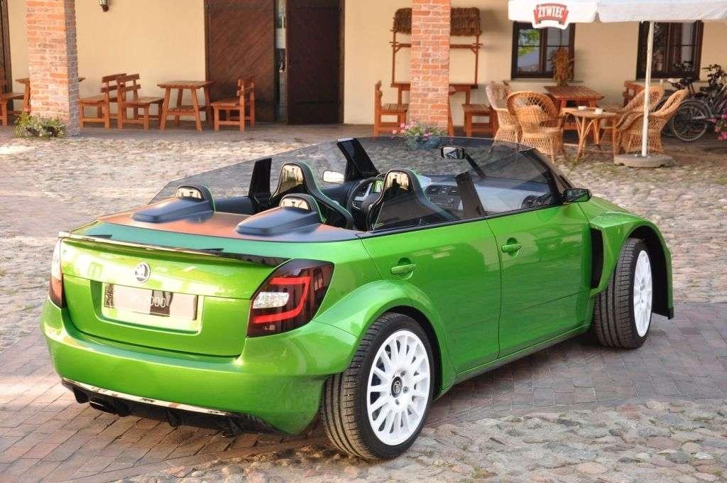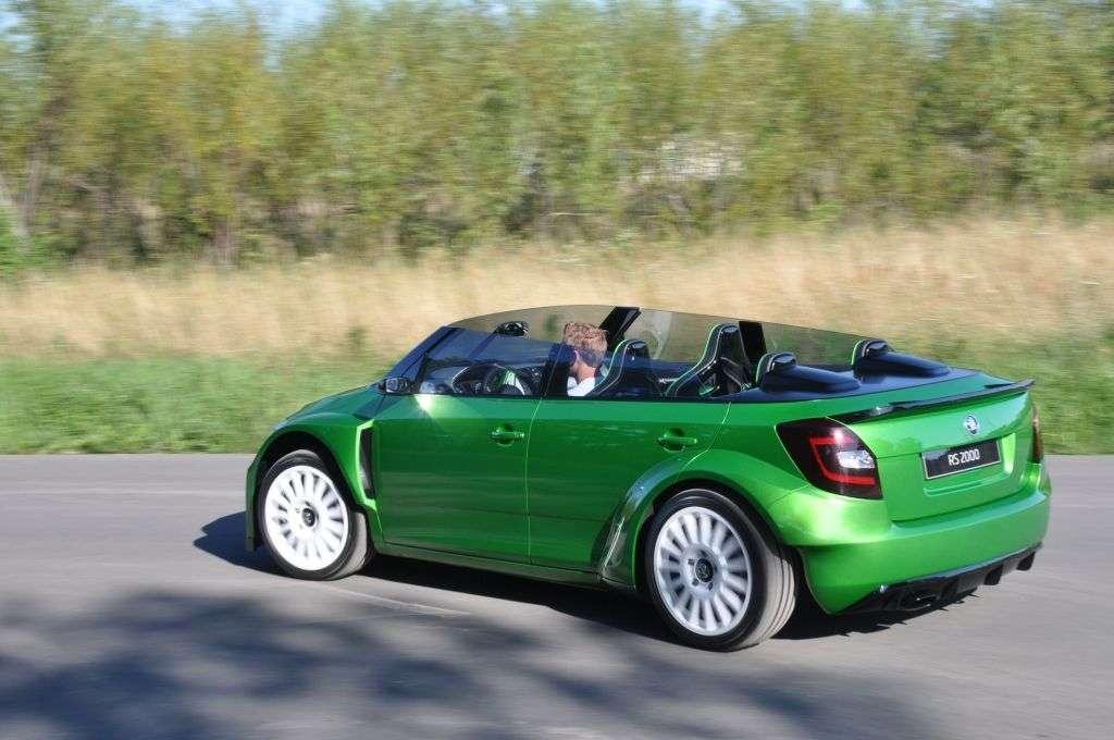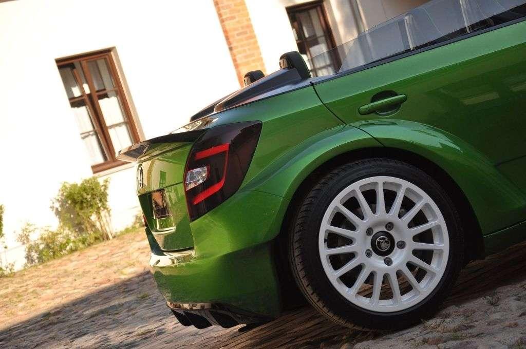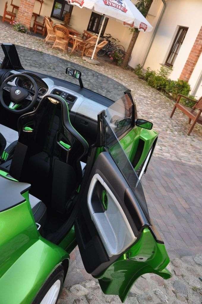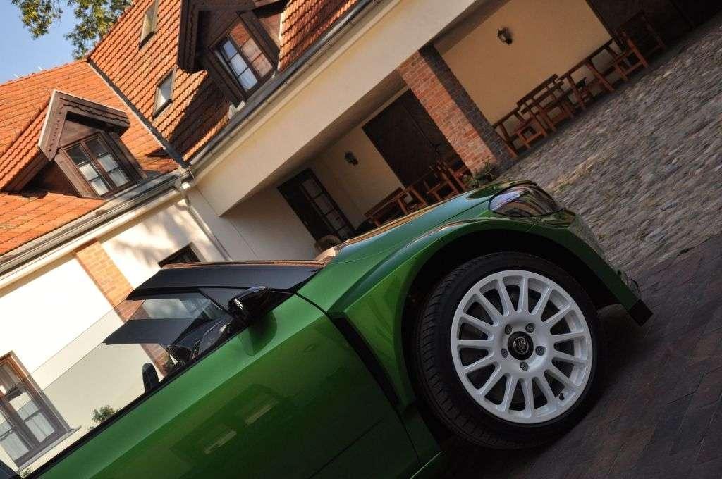 Jak wspomniałem, na tym daniu o pięciu smakach w wersji czeskiej była jeszcze wisienka. A był nią koncepcyjny model Fabia vRS 2000 - czyli odwzorowanie rajdowej Skody Fabii Super 2000. Auto zrobione z niezwykłą pasją i dbałością o szczegóły, ale też z odwagą. Nieczęsto spotyka się bowiem kabriolet tak bliski słońca (bo kompletnie pozbawiony dachu), a jednocześnie tak bliski ziemi (zderzak od asfaltu dzieliło dosłownie kilka centymetrów), do tego w wersji 4-drzwiowej i mający pod maską 180 KM z silnika 1,4 TSI (silnik znany z Fabii RS). Nic dziwnego, że ten samochód zagarnął większą część mojej fotorelacji . Prawdziwa wisienka na torcie!