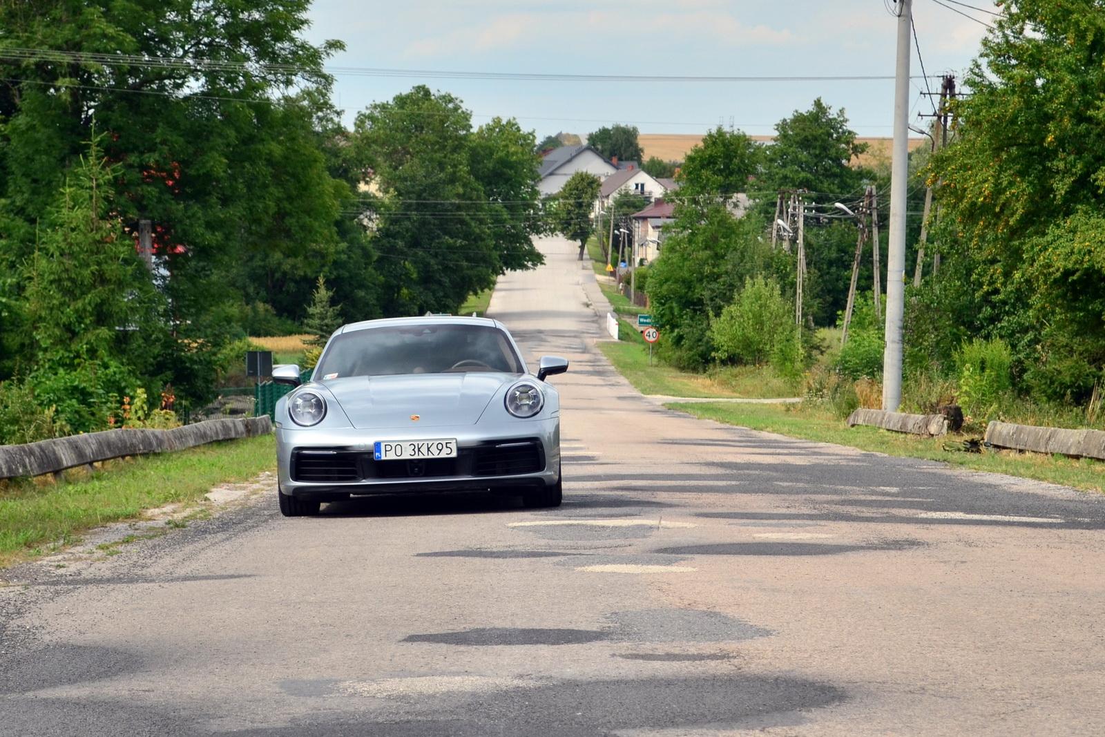 Samochód nie jest ani trochę narowisty, nie chce zabić swojego kierowcy. Nawet odwrotnie! Pokonywanie kolejnych zakrętów coraz szybciej i szybciej odbywa się całkowicie bez wysiłku – zarówno samochodu, jak i prowadzącego. Gdy nawet pojawi się lekka nadsterowność, bez problemu można ją opanować, minimalnie ujmując nogę z gazu lub wypuszczając odrobinę przód. A jeśli nieco przesadzimy – ustawiona sportowo elektronika zadba o to, żeby nasze Porsche 911 nie powędrowało „w zielone”.