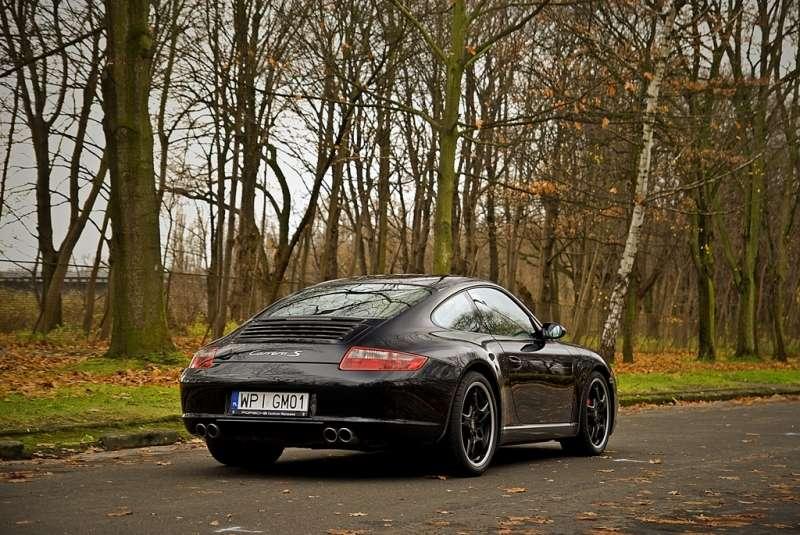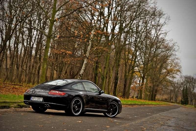 Po bliższym zapoznaniu się z wnętrzem nadszedł czas na który czekałem z niecierpliwością od kilku dni. Nieśmiało przekręcam kluczyk umiejscowiony z lewej strony kierownicy (kolejna rzecz charakterystyczna dla Porsche). Po chwili 3.8 litrowy, 6 cylindrowy silnik w układzie boxer budzi się do życia. Pora sprawdzić jak to auto jeździ. Opisywany model posiada 6-cio biegową skrzynię manualną, wyposażona w tak zwany „short shifter” dzięki czemu skok lewarka jest bardzo krótki. Pod prawą stopą mamy do dyspozycji 355 KM. Taka moc pozwala na katapultowanie się do pierwszej „setki” w czasie 4.7 sekundy oraz osiągnąć prędkość maksymalna na poziomie 295 km/h. Auto jest tak szybkie że jeżdżąc po polskich drogach trzeba bardzo często spoglądać na prędkościomierz ponieważ łatwo jest się zagapić i zebrać odpowiednią ilość punktów których wyjątkowo w tym przypadku na nagrody wymienić nie możemy. Nie da się ukryć że zawieszenie auta jest twardo zestrojone jednak codzienna jazda do pracy jest przyjemnością a nie katorgą po której musimy udać się do najbliższego ortopedy. Testowana „dziewięćset jedenastka” została wyposażona w system o tajemniczo brzmiącej nazwie PASM (Porsche Active Suspension Management) dzięki któremu auto obniża się a zawieszenie staje się jeszcze bardziej twarde. Dla prawdziwych mistrzów kierownicy, którzy są w stanie zmierzyć się z bestią istnieje możliwość całkowitego odłączenia PSM (Porsche Stability Management). Gdy już odważymy się na ten krok to jak długo będziemy w stanie utrzymać żądany kierunek jazdy będzie zależało tylko i wyłącznie od nas. Z dziennikarskiego obowiązku muszę zadać pytanie ile to auto pali? W trasie gdy jedziemy spokojnie i przestrzegamy ograniczeń prędkości auto zadowoli się około 10 litrami benzyny na każde przejechane 100 km. W miejskich korkach już tak różowo nie jest. Wyniki rzędu 15-17 litrów na 100 km są na porządku dziennym jednak jeśli się bardzo „postaramy” auto potrafi pochłonąć 30 litrów na „setkę”. Jednak jeśli ktoś decydując się na takie auto oczekując oszczędności niech lepiej skieruje swoje zainteresowania wokół innej marki albo w ostateczności zastanowi się nad wyborem Cayenne Diesel.