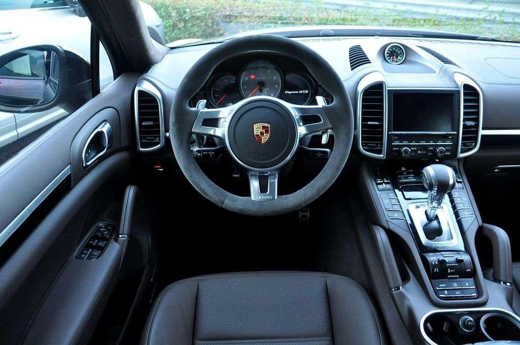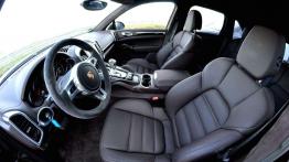 Po wejściu do wnętrza szał plastików i dodatków znika, jest dużo spokojniej, ale kilka akcentów przypomina nam o tym, że jedziemy modelem GTS. Oczywiście wygoda foteli w Porsche jest bezdyskusyjna – osiem stopni regulacji pozwala wybrać idealną pozycję. Wokół rozpościera się tapicerka ze skóry i alcantary - materiały te znajdziemy zarówno na desce rozdzielczej, jak i na drzwiach, panelu środkowym i podsufitce. Nie zabrakło również emblematów z napisem „GTS” w kilku innych miejscach wewnątrz. Na liście dodatkowego wyposażenia znajdą się również opcje wyboru dodatków w kolorze nadwozia. Możemy więc wybrać pasy bezpieczeństwa lub podłokietniki w kontrastującym kolorze np. wspomnianej wcześniej pistacjowej zieleni. To już z pewnością opcje dla najbardziej ekstrawaganckich klientów, którzy z drogiego Porsche Cayenne GTS chcą zrobić sportowego adidasa.