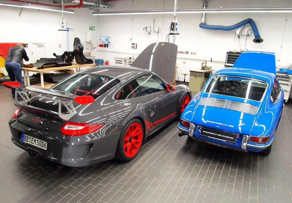 Pieczę nad eksponatami sprawuje warsztat, który został w pełni zintegrowany z Porsche Museum. Przez ogromne szyby odwiedzający mogą podziwiać pracę mechaników oraz kolejkę samochodów oczekujących na przegląd lub naprawę. Aktualnie w warsztacie znajduje się bolid przygotowany do zmagań w CART oraz model 959 - pierwszy supersamochód Porsche. Łącznikiem między warsztatem a salą ekspozycyjną jest windą, która ułatwia relokację pojazdów doprowadzonych do porządku.