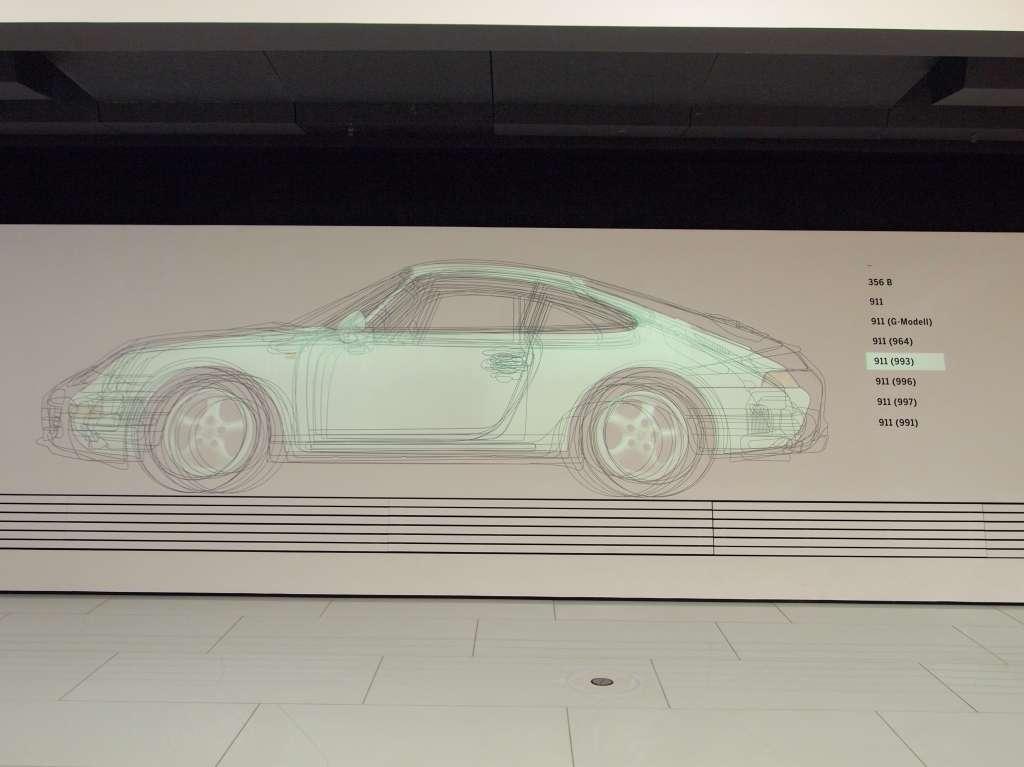 Pracownicy Porsche Museum dołożyli starań, by sposób prezentacji eksponatów był maksymalnie przejrzysty i obrazowy. Samochody wyścigowe, prototypy, czy silniki Porsche zostały pogrupowane, dzięki czemu tworzą spójną całość. Jednym z najbardziej kultowych modeli marki jest 911 Turbo. W celu lepszego zobrazowania ewolucji samochodu, pięć kolejnych generacji 911 Turbo ustawiono obok siebie. Czy z biegiem lat sylwetka Porsche 911 ulegała przemianom? Wystarczy spojrzeć na animowany schemat, a stanie się jasne, że od momentu debiutu do chwili obecnej proporcje samochodu pozostały praktycznie niezmienione.