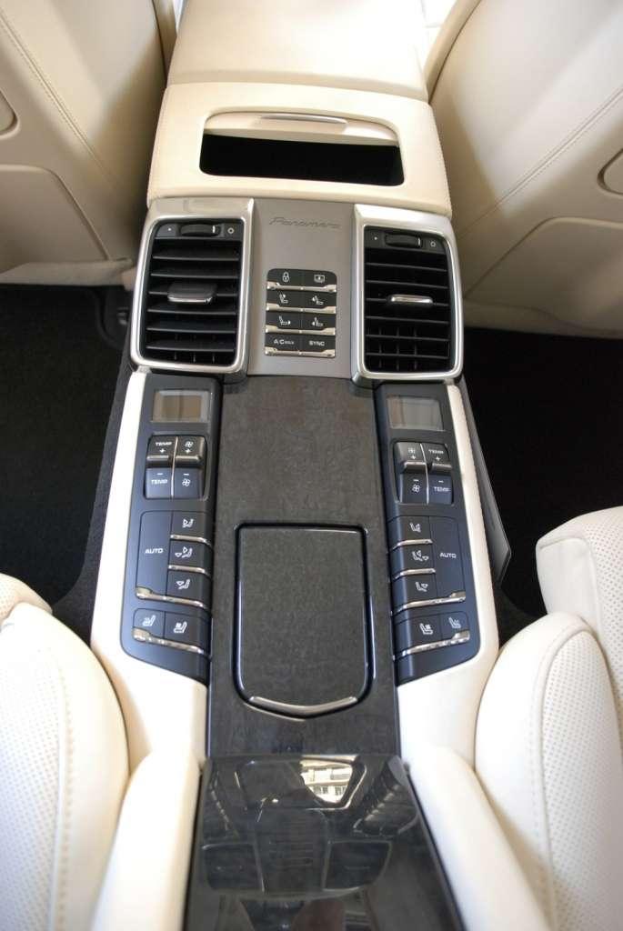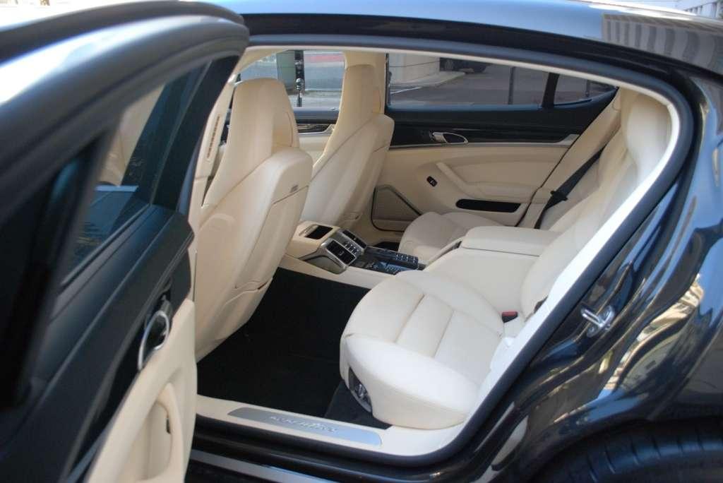 Czas zasiąść za sterami. Zanim jednak zająłem miejsce kierowcy, postanowiłem zobaczyć jak podróżować będą pasażerowie tylnej kanapy. Wnętrze udostępnionej nam do jazd wersji Executive Turbo nie pozostawia złudzeń co do tego, że Porsche chce i wie jak dopieścić nawet najbardziej wymagających klientów. Szersze drzwi zdecydowanie ułatwiają wejście na tylną kanapę, a po ich otwarciu naszym oczom ukazuje się napis na progu informujący, że to właśnie wersja Executive. Nigdzie indziej takiej nie znajdziemy. Kiedy już zająłem wygodną pozycję w drugim rzędzie, to okazało się, że moja teoria o śniegu nie jest warta funta kłaków. Po pierwsze dlatego, że różnica w ilości miejsca jest kolosalna! Jest to chyba jeden z niewielu samochodów, które byłyby w stanie przewieźć czterech koszykarzy bez obawy, że ich kolana będą narażone na kontuzje. Po drugie… o tym za chwilę.