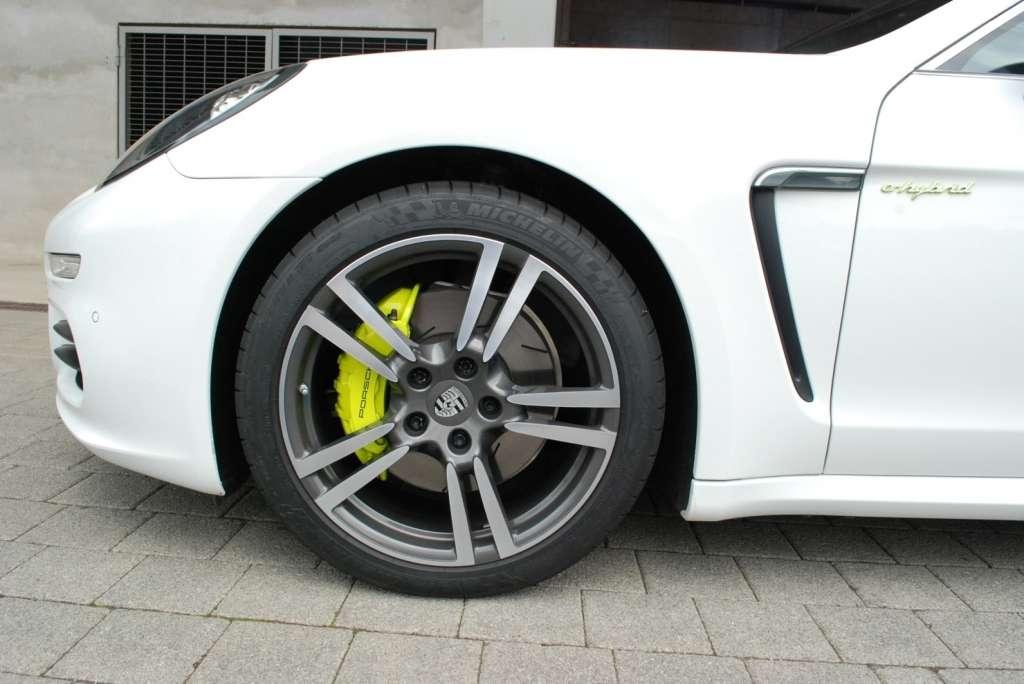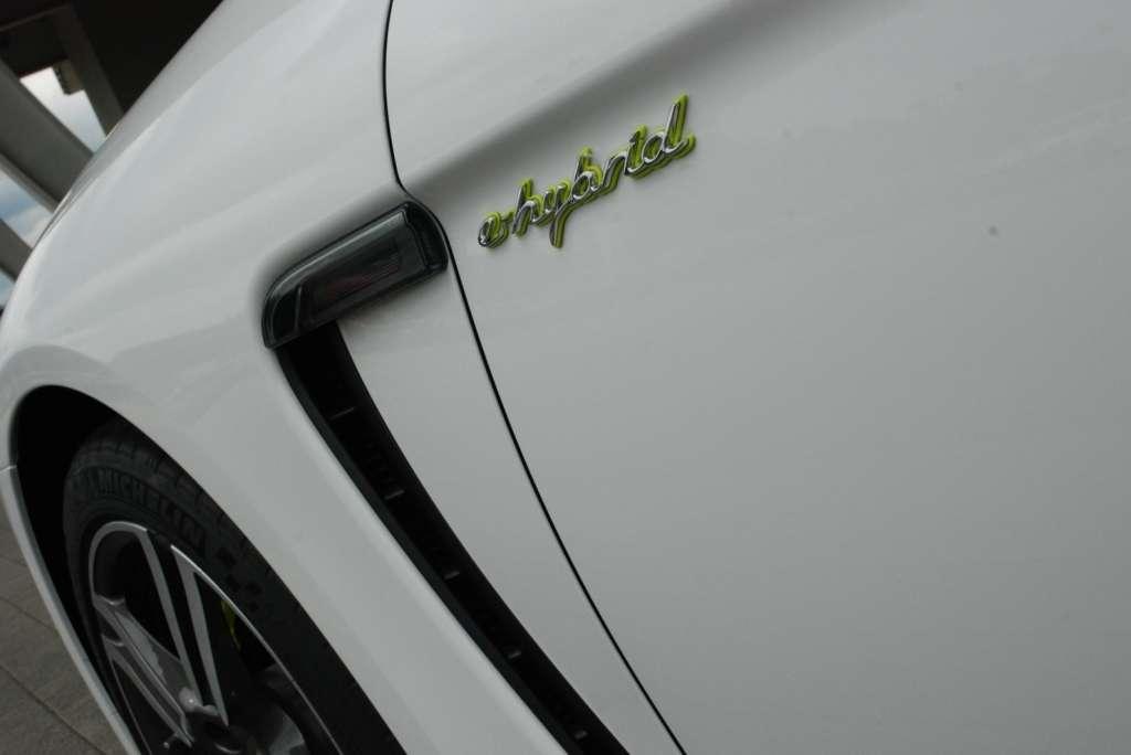 Już pierwszy rzut oka na samochód pozwala wychwycić detale, które odróżniają wersję hybrydową od konwencjonalnej. Zielono-żółte zaciski hamulców prześwitujące przez aluminiowe felgi, napisy e-hybrid oraz Porsche S w obwódce tego samego koloru, a także dodatkowa klapka kryjąca złącze ładowania identyfikują tę wersję natychmiast.