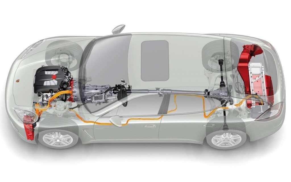 Największa nowość samochodu to oczywiście napęd, zapożyczony z hybrydowej odmiany Cayenne. Połączono w nim trzylitrowy silnik V6 o mocy 333 KM z dysponującą mocą 47 KM jednostką elektryczną, która służy także jako rozrusznik i alternator, ładujący akumulatory. Zastosowana w samochodzie skrzynia biegów to ośmiobiegowy automat Tiptronic S. W sumie samochód dysponuje mocą 380 KM. Zastosowanie hybrydowego napędu pozwoliło zmienić Panamerę w najoszczędniejsze Porsche w historii, zużywające na przejechanie 100 km zaledwie 7,1 l paliwa. Za niskim spalanie idzie także emisja dwutlenku węgla, która spadła do poziomu 167 g/km. Takie wielkości dotyczą Panamery wyposażonej w standardowe opony. Zastosowanie oferowanego w ramach opcji całorocznego ogumienia Michelin o niskich oporach toczenia pozwala obniżyć spalanie do 6,8 l/100 kmj, a emisję CO2 do 159 g/km. Niskie zużycie paliwa to m.in. zasługa zastosowania układu, który wyłącza silnik, kiedy samochód jedzie po autostradzie i chwilowo nie potrzebuje jego napędu. To swoisty układ Start – Stop, tyle że dotyczący nie stawania w korkach, ale jazdy bez obciążenia autostradą, co Porsche nazywa trybem żeglowania samochodem. Dotyczy to jazdy z maksymalną prędkością do 165 km/h.