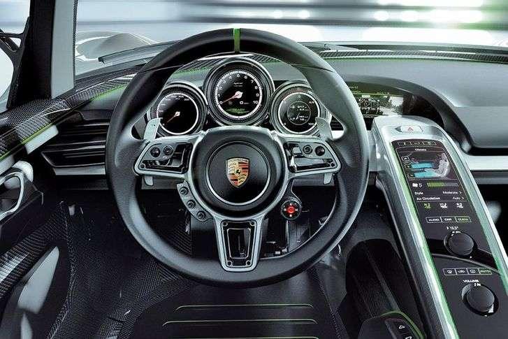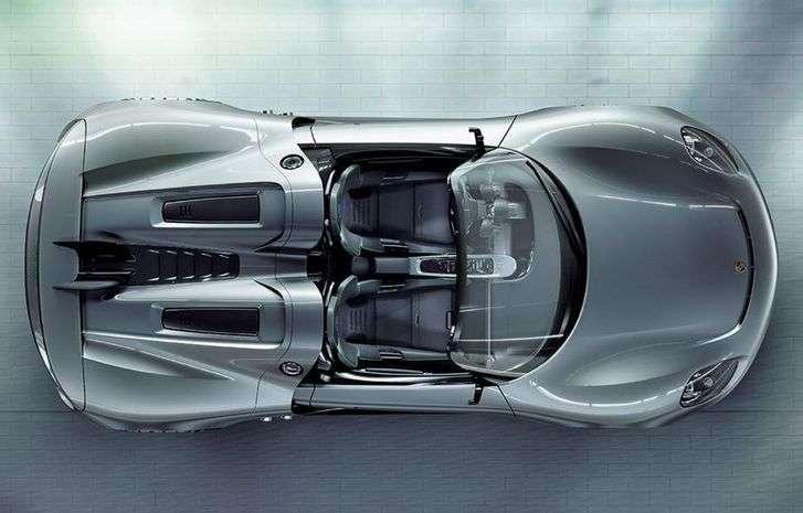 Za fotelami znalazł się natomiast wysokoobrotowy silnik V8, który moc 500 KM osiąga przy 9200 obrotów. Połączono go z dwusprzęgłową, siedmiostopniową skrzynią biegów, przenoszącą moment obrotowy na tylne koła. Hybrydowe Porsche ma ponadto dwa silniki elektryczne – po jednym na każdej osi. W sumie mają moc 218 KM.