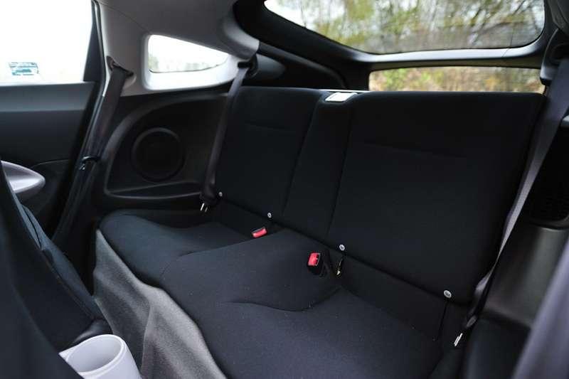 Cała konsola środkowa jest lekko skierowana na kierowcę otaczając go z obu stron. Do tego fotele, które poza tym, że są wygodne i dobrze trzymają na boki, to dodatkowo dzięki zagłówkom zintegrowanym z oparciem wyglądają bardzo ciekawie. O tylnej kanapie można zapomnieć. Jest kompletnie nie do użytku przez dorosłe osoby, a i dzieci będą miały spore problemy aby upchać gdzieś swoje chude nóżki. Jedyną jej zaletą jest to, że można złożyć jej oparcie powiększając skromny 212-litrowy bagażnik.