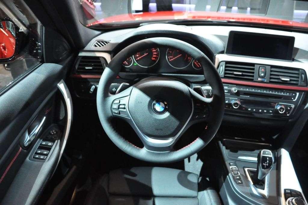 Wnętrze auta nie pozostawia wątpliwości co do tego, w aucie jakiej marki siedzimy. Także i tu nie ma zbyt wielkiego wpływu serii 5 – możemy więc mówić bardziej o inspiracji, niż o kopiowaniu. Deska rozdzielcza jest czytelna, najważniejsze informacje są wyświetlone także na szybie przed kierowcą, a centralna konsola zgodnie z najlepszymi tradycjami marki jest delikatnie obrócona w stronę kierowcy. BMW będzie oferowało nową „trójkę” w trzech wersjach Sport Line, Modern Line oraz Luxury Line.