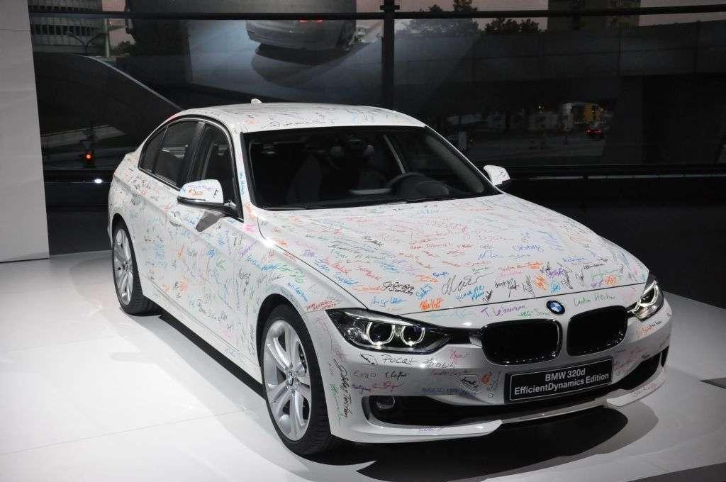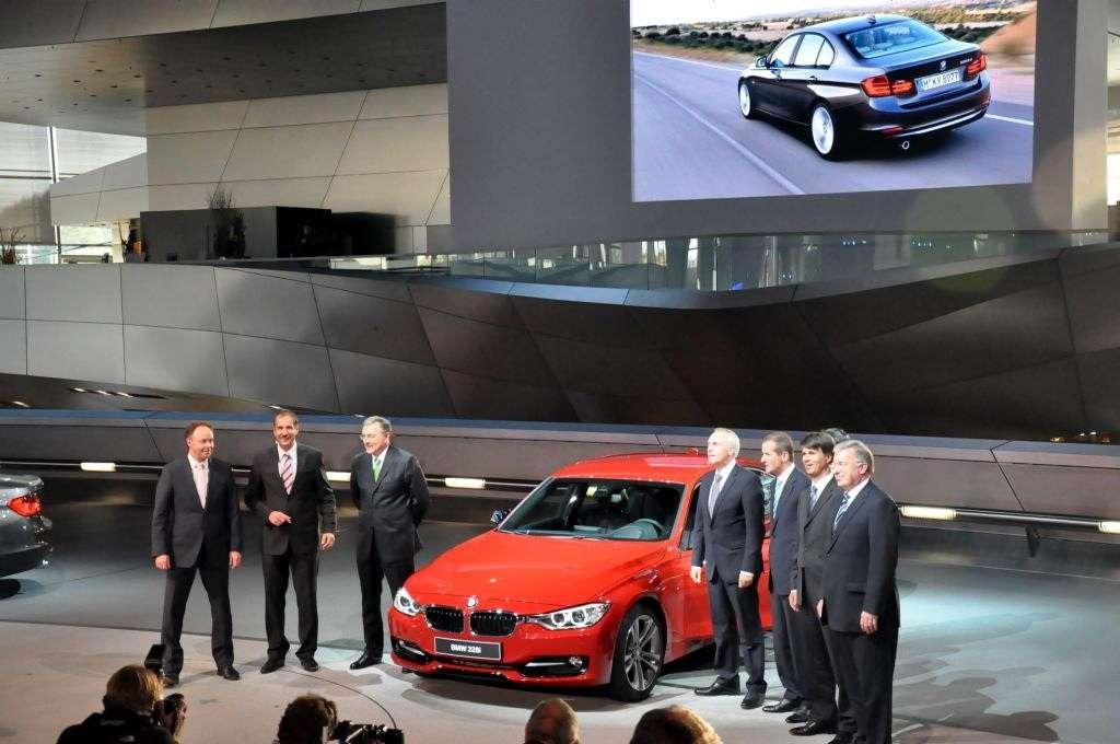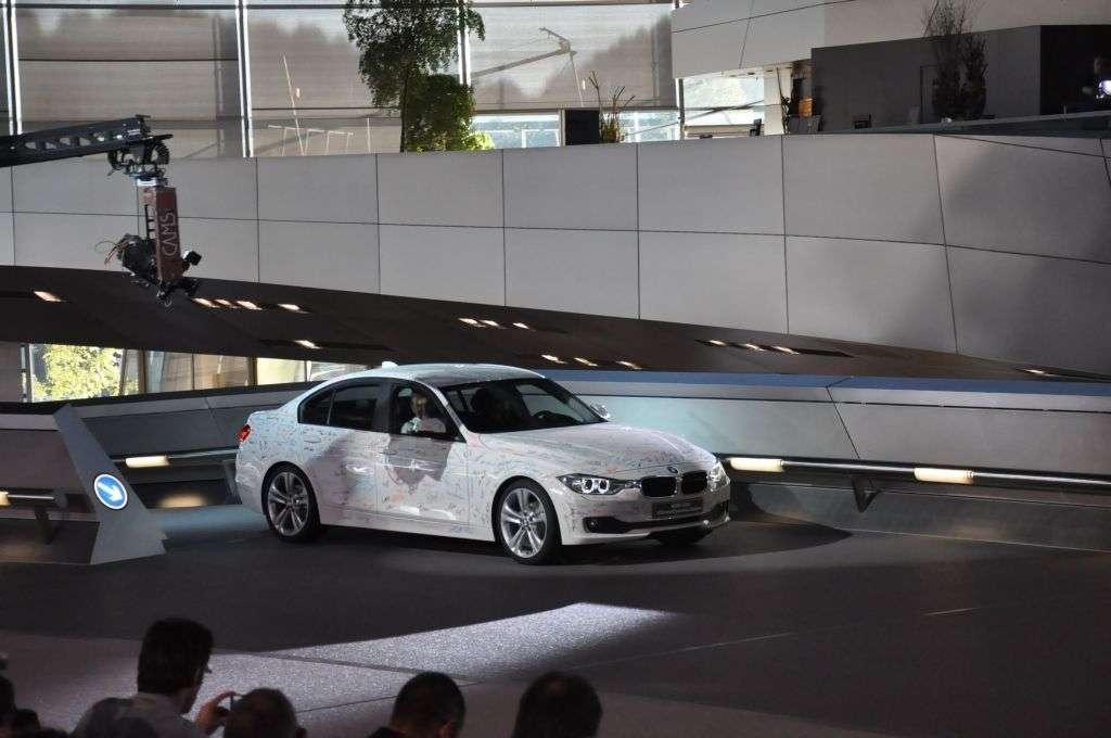 Nawet gdy wszyscy zebrani myśleli już tylko o tym, aby nowa „trójka” wyjechała wreszcie z ukrycia, przemówieniom organizatorów nie było końca. Wreszcie – po krótkim laserowym show, pierwsza limuzyna wyłoniła się z mroku. Cała w podpisach pracowników fabryki, przejechała przez wąski korytarz utworzony z autorów podpisów i po krótkiej podróży zawitała do głównego holu BMW Welt.