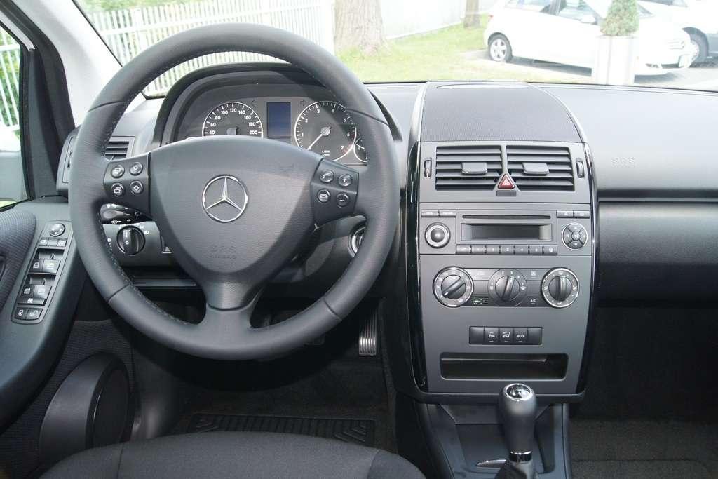 Gdy już zajmiemy miejsce we wnętrzu zauważymy jednak, że brak tam rozwiązań stylizacyjnych do jakich przyzwyczaiło nas wielu producentów małych samochodów. Zamiast stylizacji rodem z kokpitu samolotu widzimy ergonomicznie rozplanowaną i gwarantującą łatwość obsługi konsolę na której umieszczono pokrętła kierunku i siły nadmuchu, oraz ustawienie temperatury, czy radio identyczne jak w innych Mercedesach. Także kierownica wielofunkcyjna, obsługiwany przyciskami na niej komputer pokładowy, oraz zestaw wskaźników to elementy które dobrze znamy z innych Mercedesów.