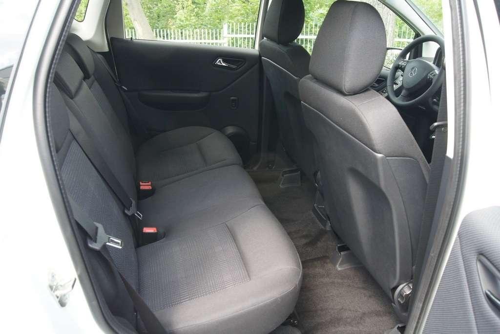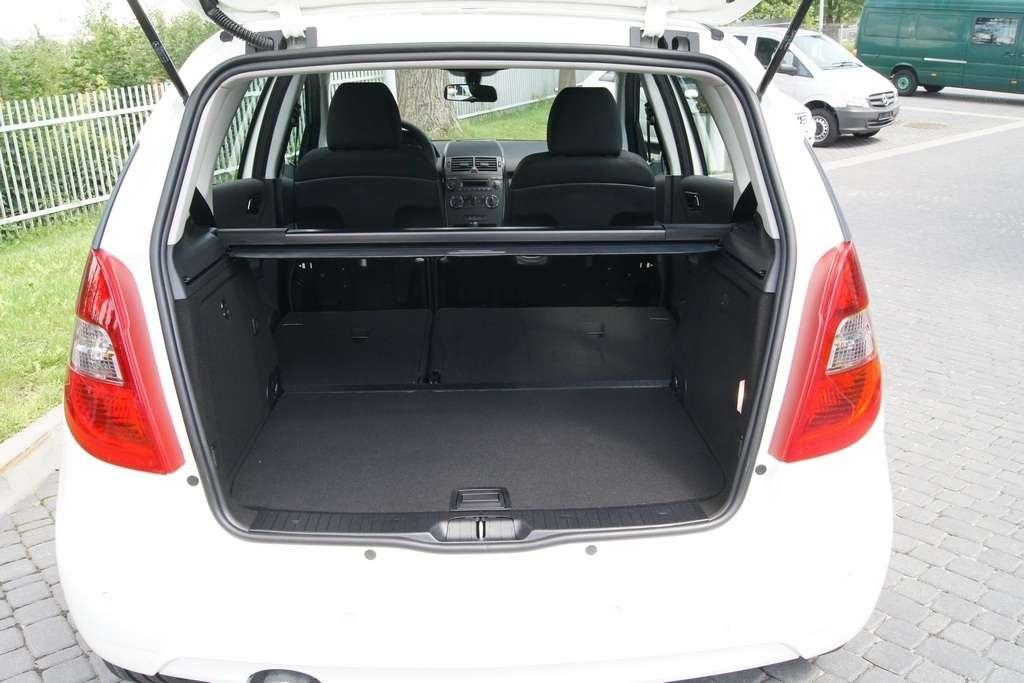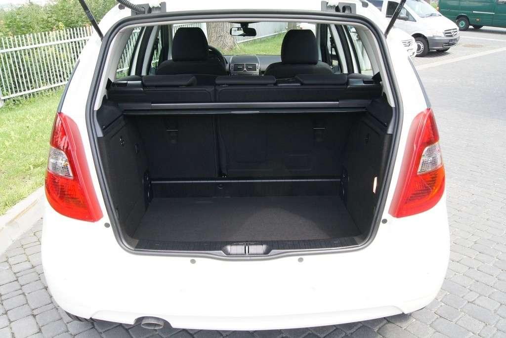 Pierwsze co zauważymy to pozycja foteli, pozwalająca na swobodne i bezproblemowe zajmowanie miejsca w samochodzie. Także zapięcie dziecka w foteliku, czyli czynność podczas której musimy się „gimnastykować” aby sięgnąć poza fotelik i umieścić klamrę pasa w sprzączce, w małym Mercedesie jest banalnie proste. Drugie co nas zaskoczy to wielkość wnętrza. Możliwość ulokowania podzespołów napędowych niżej, sprawiła iż rozstaw osi (a jest prawie taki sam jak w Audi A3) został lepiej wykorzystany dla zagospodarowania przestrzeni pasażerskiej i w samochodzie jest ilość miejsca jak w wersjach dłuższych o 50 cm. Zadawalająca jest także wielkość bagażnika wynosząca 435 litrów, Jest to o 80 litrów więcej niż w A3.