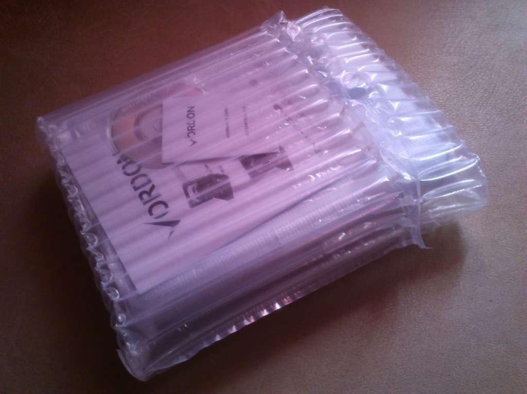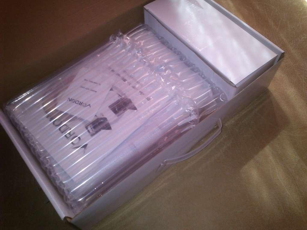 Pierwsze wrażenie na temat urządzenia płynie zazwyczaj z… pudełka. Jego jakość i design potrafi zniechęcić lub wręcz przeciwnie, skłonić do zakupu konkretnego sprzętu. A jak jest w przypadku firmy Vordon? Szczerze mówiąc – średnio. Oczywiście nie ocenia się zawartości po opakowaniu, ale to też wypada opisać. Dominującym kolorem pudełka jest biały, z szarymi wstawkami. Na froncie w języku angielskim wymieniono podstawowe funkcje odtwarzacza, nie zabrakło również jego zdjęcia. Rzecz jasna to wszystko kwestia gustu, ale producent mógłby się nieco postarać i odrobinę uatrakcyjnić wizualną stronę pudełka. Plusem z pewnością jest plastikowy uchwyt ułatwiający transport.