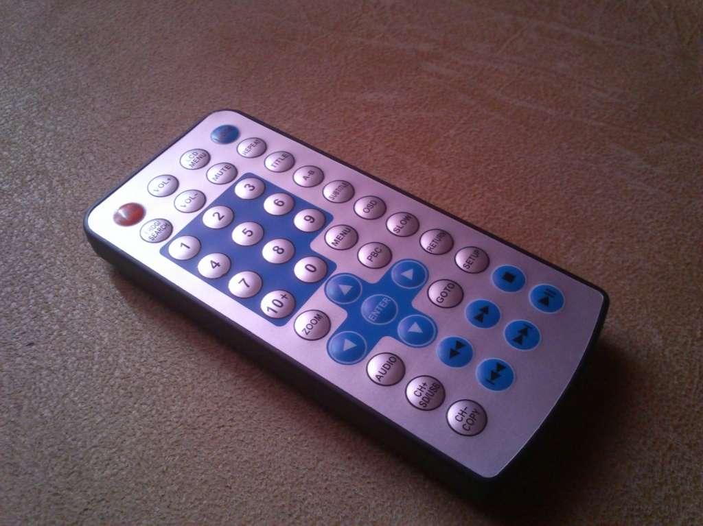 Teraz przejdźmy do zawartości niewielkiego białego pudełka, w którym znajdziemy kompletne okablowanie, pilota zdalnego sterowania oraz kontroler do gier. Pilot jest dość niewielki, pewnie leży w dłoni, choć przerażać może spora liczba przycisków. Te z kolei działają dość opornie, ale po krótkiej chwili można przyzwyczaić się do działania. Niestety w naszym zestawie testowym zabrakło dwóch baterii AAA, które niezbędne są do działania pilota – to spory minus, mamy nadzieję, że producent poprawi się w tym temacie. Okablowanie jest średniej jakości, zasilacz ma dość krótki kabel (ok. 100 cm), więc swoboda korzystania z odtwarzacza np. w kuchni lub sypialni ogranicza się do okolic gniazdka. W zestawie są również słuchawki, jednak ich jakość pozostawia wiele do życzenia – kabelek jest niezwykle cienki, przez co ryzyko, że dzieci je po prostu zepsują jest ogromne. Wątpliwości wzbudza również kontroler do gier – wszystkie guziki są bardzo luźne.