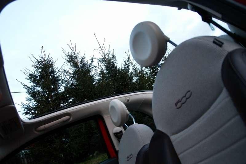 Stopień uchylenia kapturka Fiata można dobierać według własnych upodobań lub zdać się na trzy zaprogramowane pozycje. Podczas jazdy pierwsza działa jak gigantyczny „szyberdach”, w drugiej sięga do tylnych zagłówków, zaś w granicznej tworzy brezentową harmonijkę ze światłem stopu opartą o klapę bagażnika. Co ciekawe nawet wtedy da się go otworzyć. Kolejnym plusem jest również możliwość otwierania i zamykania dachu podczas jazdy z prędkością do 60 km/h.