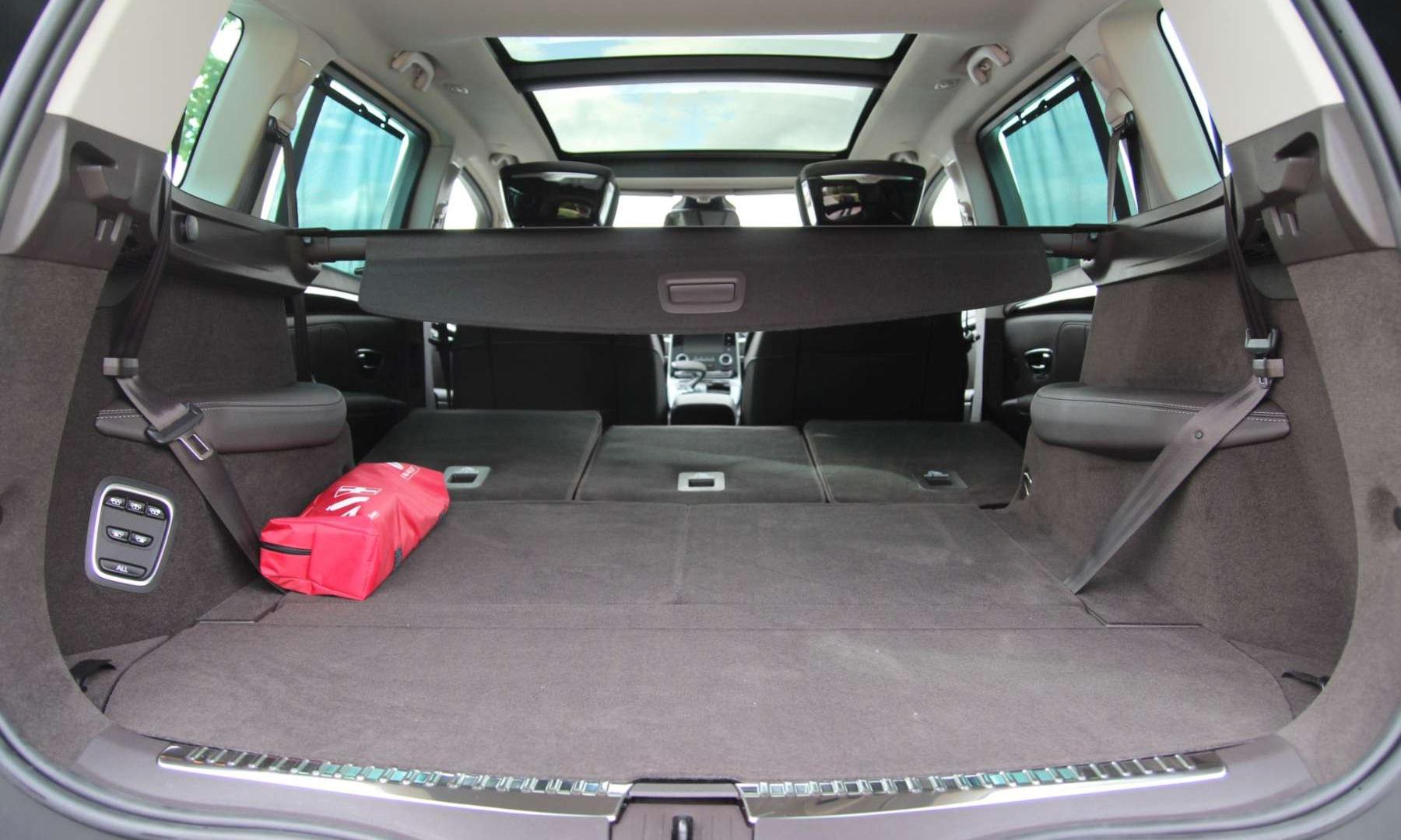W ostatnim rzędzie czuć, że koncepcja samochodu uległa zmianie – ilość miejsca nad głowami pasażerów trzeciego rzędu jest ograniczona. Ceną za bardziej atrakcyjny wygląd tyłu nadwozia jest też wyżej położony próg załadunku. Sam bagażnik nie budzi wątpliwości. Nawet przy komplecie pasażerów pomieści dwie walizki (214 l), a kufer 5-osobowego Espace zawstydza wszystkie kombi (680 l). Składanie foteli ułatwia system Magic Folding. Umieszczony w bagażniku panel pozwala na złożenie dowolnie wybranych siedzeń jednym ruchem palca. Operację można też przeprowadzić z poziomu systemu multimedialnego. System jest pasywny – korzysta z grawitacji i sprężyn, więc do ustawiania foteli w pionie trzeba użyć siły własnych mięśni.