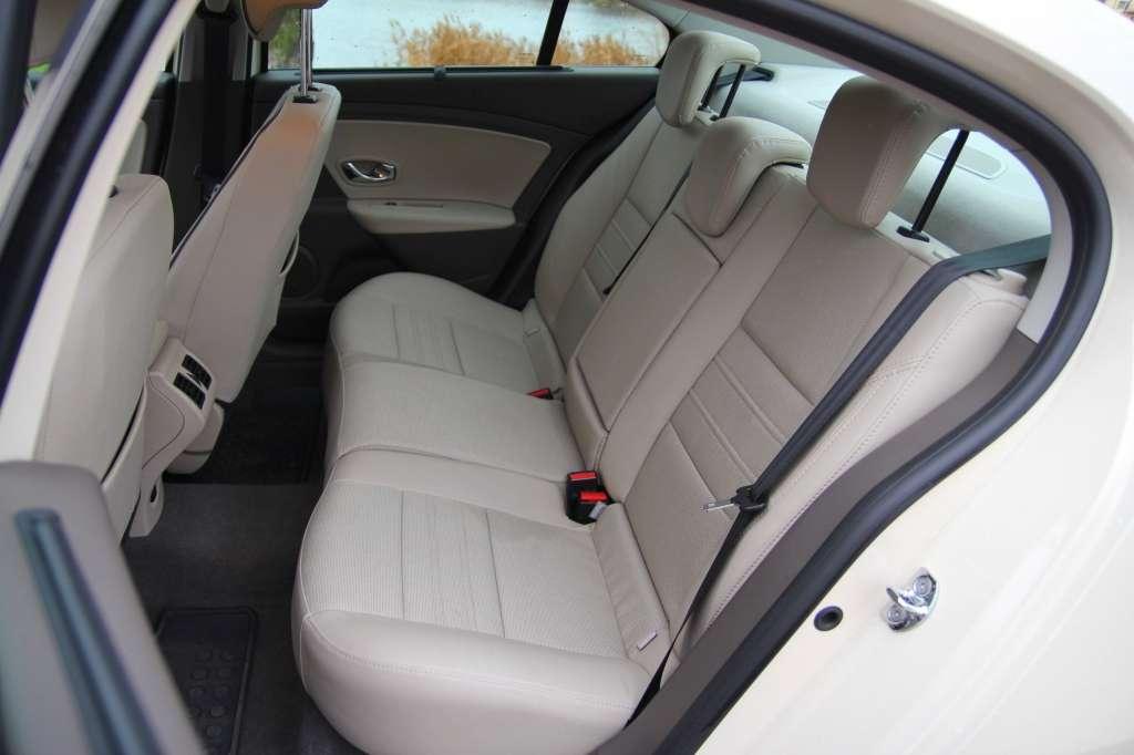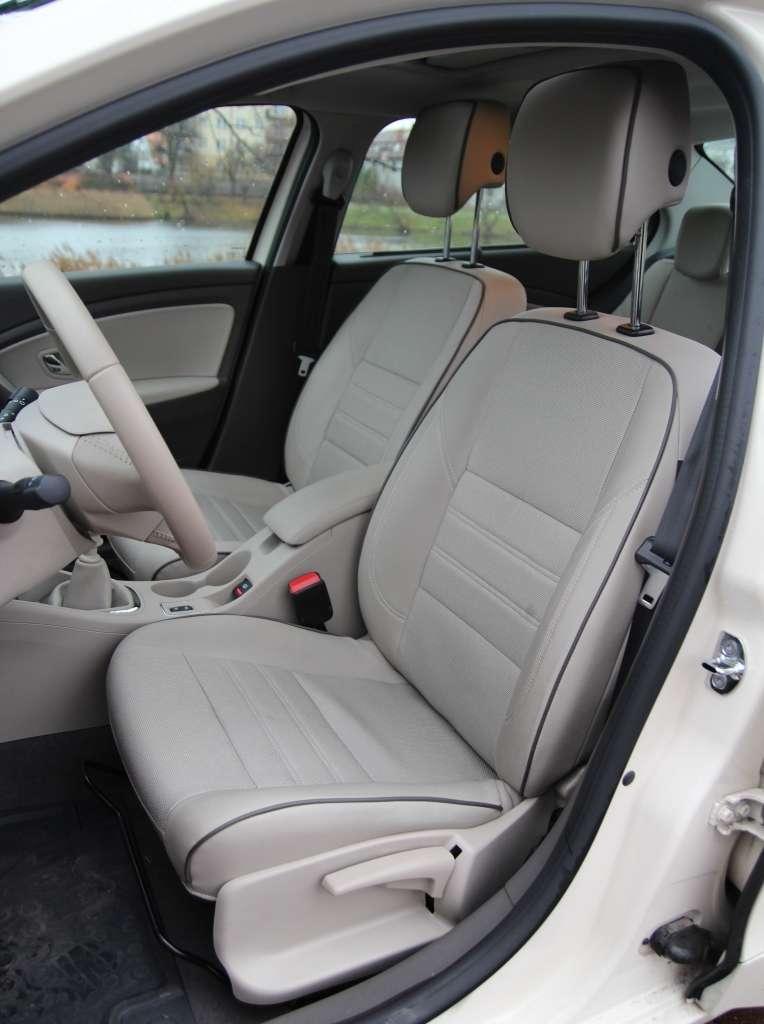 Układ kokpitu oraz przestrzeń w pierwszym rzędzie nie pozwala zapomnieć o pokrewieństwie Fluence i Megane. Jasna tonacja foteli, tunelu środkowego i deski rozdzielczej optycznie powiększyła wnętrze testowanego samochodu. Podróżujący w drugim rzędzie docenią wydłużony rozstaw osi. Za jego sprawą nie brakuje miejsca na nogi. Ukształtowanie kanapy sygnalizuje, że najwygodniej będzie dwóm osobom. Kiedy przyjdzie podróżować trójce, okaże się, że płaski tunel środkowy oraz dość wcześnie kończąca się plastikowa zabudowa z kratkami wentylacyjnymi ułatwiają wygodne ułożenie stóp.