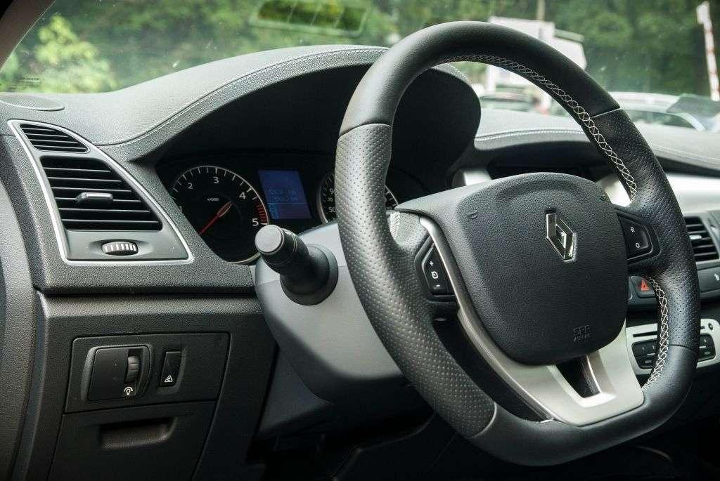 Wnętrze jest równie stonowane, co bryła auta. Dominuje tu czerń przełamana delikatnymi wstawkami z aluminium na kierownicy i desce rozdzielczej. Renault podchodzi do tematu wersji wyposażenia dość oszczędnie, oferując nam tylko dwie opcje, w dodatku ściśle powiązane z wersją silnikową. Słabsza jednostka o mocy 150 KM zestawiona została z pakietem Limited, który odbiega standardem od testowanej przez nas wersji GT z silnikiem 180 KM. Tutaj dostaliśmy naprawdę bogate wyposażenie, które zawiera choćby ciemnografitowe, skórzane fotele z kontrastowymi przeszyciami, elektryczną regulacją i podgrzewaniem. Znajdziemy tu też dwustrefową klimatyzację automatyczną, bezkluczykowy system dostępu do samochodu Renault Hands Free i system multimedialny R-link z mapą Europy Centralnej w wersji podstawowej. System ten obsługujemy dżojstikiem i przyciskami umieszczonymi na dość rozbudowanym tunelu centralnym, który całkowicie oddziela od siebie pasażerów na przednich fotelach. Jak to zwykle w Renault bywa, na tymże tunelu znalazł się też włącznik tempomatu – czemu? Zamiast obsługiwać cały moduł w jednym miejscu, musimy poszukać małego przycisku w całkiem innym miejscu, co trochę zaburza naturalną ścieżkę interakcji. Nie doszukałem się tu też zbyt wielu schowków, bo oprócz tych typowych, jak przed pasażerem i w drzwiach, umieszczono je jedynie pod podłokietnikiem i przed skrzynią biegów. Ten ostatni nie jest też szczególnie duży i raczej przeznaczony jest na telefony komórkowe, niż choćby kubki z kawą. A z kubkami też mamy mały problem, bo projektanci zapomnieli o osobie podróżującej na przednim, prawym fotelu. Kierowca położy swój napój w wysuwanej tacce, osoby na tylnej kanapie mają stosowne uchwyty w podłokietniku, a pasażerowi pozostaje ręka, co w przypadku gorącej herbaty czy kawy może nie być „zbyt komfortowe”. Tym bardziej dziwi mnie fakt, że przewidziano takie udogodnienia dla osób podróżujących z tylu, ale być może chcieli im w ten sposób zrekompensować znikomą ilość miejsca, ściśle zależną od rozmiarów osób podróżujących z przodu. Przy siedziskach odsuniętych maksymalnie do tyłu miejsce na nogi właściwie nie istnieje, ale jeśli przysuniemy się nieco do przodu, to być może ktoś tam się zmieści – przez nisko opadający dach będą to raczej dzieci, niż dorośli. Dorośli mogliby uznać daleką podróż na tylnej kanapie za torturę.