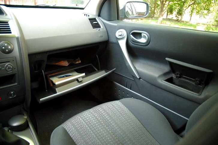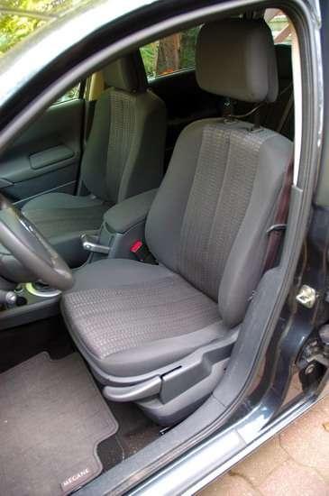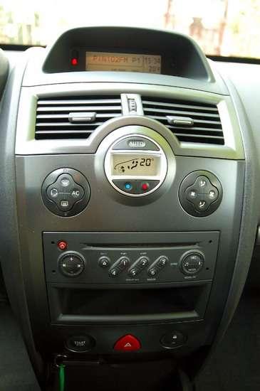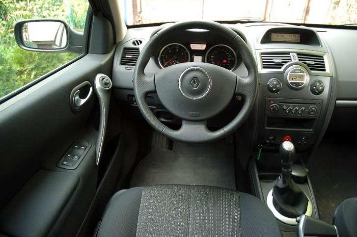 W środku „meganki" dominują proste i niezbyt finezyjne, ale za to funkcjonalne i całkiem miękkie i miłe w dotyku plastiki. Jakość montażu przyjdzie pewnie ocenić po paru latach, ale na pierwszy rzut oka (i ucha) wszystko spasowane jest jak należy. Rozplanowanie deski rozdzielczej to ukłon w stronę funkcjonalności i intuicyjnej obsługi. Wnętrze nieco ożywiają aluminiopodobne (bo też plastikowe) wstawki i listwy. Boczki drzwi pomieściły otwartą kieszeń w części przedniej i mały schowek z klapką z tyłu. Tu też umieszczono sterowanie elektrycznymi szybami, choć ich położenie dokładnie w środku długości drzwi wymaga cofnięcia ręki, by je obsłużyć. Wygodnie można za to wyregulować lusterka dźwigienką w górnej części uchwytu. Zestaw wskaźników prosty i czytelny (zwłaszcza w nocy), choć czerwone wskazówki sprawiają wrażenie za grubych, a oznaczenia na prędkościomierzu mogłyby być dokładniejsze. W dzień rozpraszać mogą aluminiopodobne, szerokie obwódki zegarów Pomiędzy dwoma okrągłymi zegarami znalazły się dwa wyświetlacze – dolny generalnie pokazuje otwarcie poszczególnych drzwi, na górnym wyświetlane są po polsku wskazania komputera pokładowego.