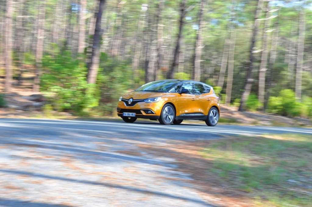 Podczas pierwszych jazd wypróbowałem dwa modele nowego minivana Renault. Pierwszym był Scenic z silnikiem TCe 130. Pomimo sporej mocy dynamika (0-100 km/h: 11,4 s) pozostawia nieco do życzenia, być może przez sporą masę własną wynoszącą 1430 kg. Na szczęście układ kierowniczy działa poprawnie, zawieszenie pomimo „dziwnych” kół sprawuje się jak należy, a mechanizm skrzyni biegów znacząco zyskał na precyzji pracy. Średnie zużycie wyniosło na testowej trasie ok. 8 l/100 km. Kolejnym modelem był Grand Scenic dCi 160. Dłuższe nadwozie lepiej sprawuje się na długich autostradowych trasach, ma też bardziej komfortowo zestrojone zawieszenie dające wrażenie płynięcia po drodze. Dynamika jest lepsza, niż w benzyniaku (0-100 km/h: 10,7 s), choć odczucia przyspieszeń i prędkości są mocno stłumione. Doskonale wypada aksamitnie pracująca skrzynia dwusprzęgłowa, ale spalanie jak na Diesla jest bardzo duże. Podczas jazd testowych nie spadło poniżej 8 l/100 km.