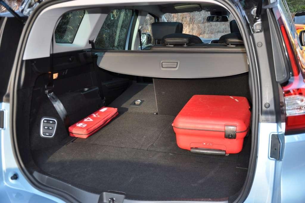 Praktyczny układ wyjmowanych foteli znany z pierwszego Espace'a nie znalazł zastosowania też w dłuższym Grand Scenicu (4,63 m). Mamy tu do wyboru wersję pięciomiejscową z ogromnym bagażnikiem mieszczącym wg normy VDA 718 litrów bagażu, lub siedmiomiejscową oferującą przy dwóch rzędach foteli bagażnik o pojemności 533 litrów. Kanapa drugiego rzędu tak jak w Scenicu jest przesuwana, a podane pojemności odnoszą się do kanapy odsuniętej maksymalnie do tyłu. Po jej złożeniu uzyskujemy niemal płaską powierzchnię załadunku.