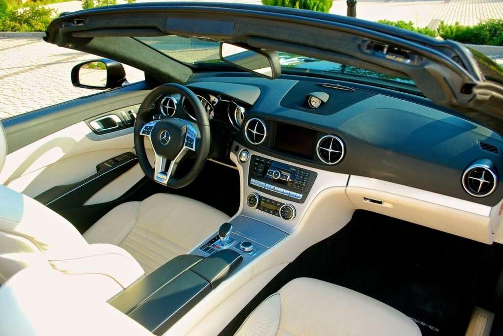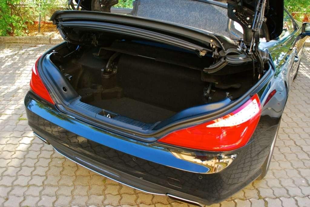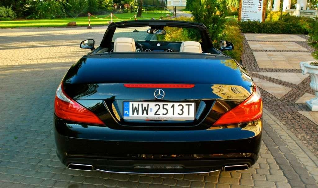 Bagażnik? Na krótkie wyjazdy we dwoje – w zależności od pozycji dachu mieści od 241 do 381 litrów. Spora liczba schowków ułatwia utrzymanie porządku w kabinie SL-a. Trafiły do niej elementy znane z innych modeli Mercedesa. Nie urzekają sportowym wzornictwem, ale świetnie pasują do ekskluzywnego charakteru roadstera. Kto chciałby delektować się jazdą pod gołym niebem przy dowolnej temperaturze, powinien wybrać z arcydługiej listy opcji Airscarf, czyli układ ogrzewania głowy i karku. Po jego włączeniu można, bez obaw o zdrowie lub samopoczucie, podróżować z otwartym dachem nawet, gdy temperatura powietrza spadnie poniżej 10 stopni Celsjusza.
