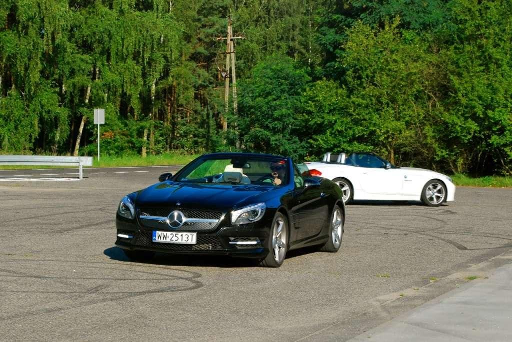 W obu roadsterach poczynania kierowcy są monitorowane przez wszechobecną elektronikę, która razie potrzeby dyskretnie, acz skutecznie interweniuje. W SL350 system ESP zabiera się do pracy, gdy koła zaczynają ślizgać się po asfalcie. BMW obniżyło poprzeczkę - zachowanie samochodu zostaje skorygowane po kilkucentymetrowej ucieczce opon z optymalnego toru. Producent wyszedł z założenia, że kto kupuje roadstera, chciałby od czasu do czasu poczuć, że jego tył potrafi żyć własnym życiem. Jeżeli chcielibyśmy sprawdzić własne umiejętności, ESP można uśpić. Prezentowane samochody posiadają dwustopniowe wyłączniki systemów kontroli trakcji i stabilności. Co zaskakujące, oba – mimo mocnych silników oraz napędu na tył – są raczej podsterowne. Tendencję do płużenia przodem bardzo łatwo przełamuje się w BMW - wystarczy mocniej docisnąć gaz. Być może nie jest to najbardziej ekscytująca charakterystyka układu jezdnego, ale zasługuje na pochwałę. Samochód staje się agresywny tylko na wyraźne polecenie kierowcy, co korzystnie wpływa na bezpieczeństwo.