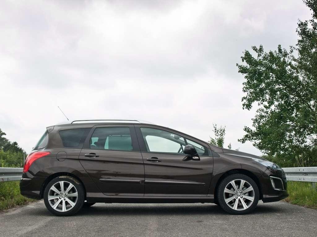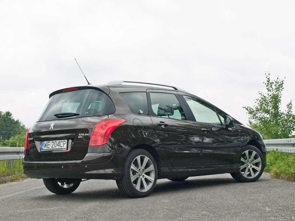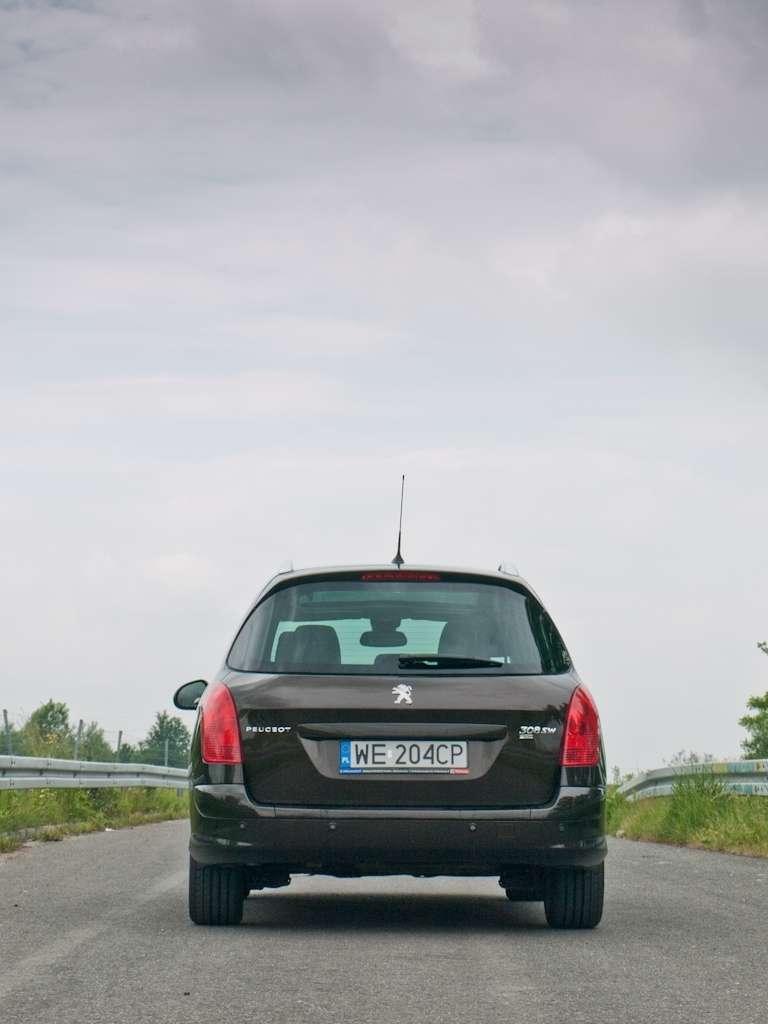 SW na klapie Peugeota 308 nie oznacza tylko, że mamy do czynienia z wersją kombi tego francuskiego hatchbacka. Nie wszystkie Peugeoty 308 kombi mogą poszczycić się mianem SW. Na te dwie litery zasługują tylko te z bogatym wyposażeniem, ze szczytu cennika. Dzięki temu wyglądają też dużo lepiej, niż uboższe rodzeństwo. Bo francuskiej interpretacji kombi na bazie hatchbacka nie można uznać za najpiękniejszą propozycję w segmencie. Z każdej perspektywy proporcje nadwozia 308 SW zdają się mało spójne, przez co masz wrażenie, że tył został doczepiony jakby na siłę. Po prostu hatchback wygląda lepiej. Ogólny odbiór 308 SW poprawia elegancki brązowy kolor, w którym pomalowane są również wszelkie pozostałe elementy karoserii: listwy, klamki, lusterka, zderzaki. Z kolorem nadwozia komponują się przyciemniane klosze ksenonowych reflektorów i srebrne relingi dachowe oraz przyciemniane szyby i 17-calowe felgi. Słowem, diabeł tkwi w szczegółach, a te nadają mało porywającej sylwetce 308 SW, całkiem atrakcyjnego i może nawet prestiżowego image… już od 74 100 zł.