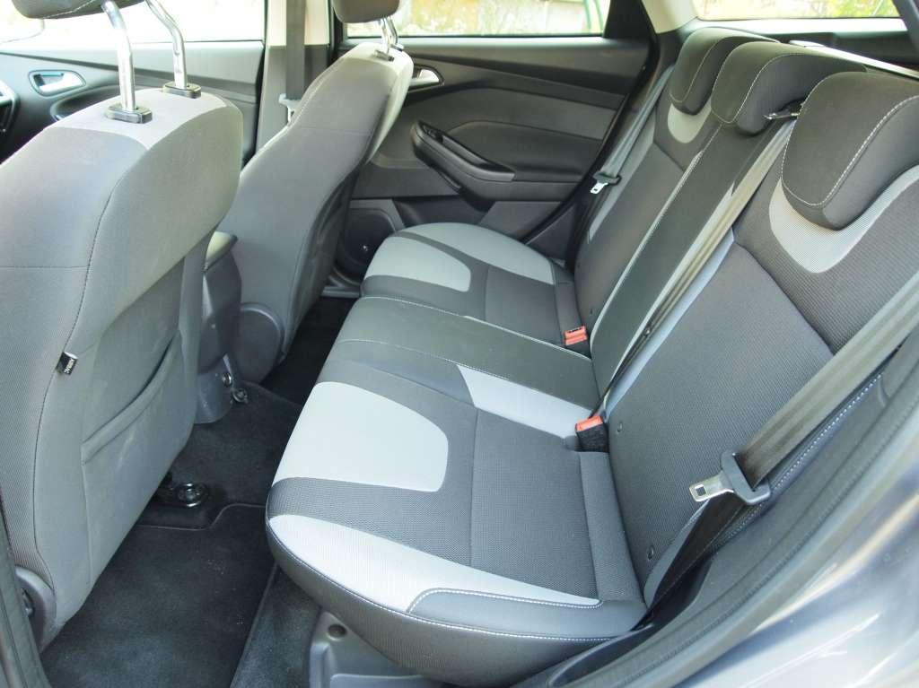 Obiekcje można mieć jedynie do designu wnętrza. Jest efektowny i odważny – na tyle, że niektórzy stwierdzą, iż stanowi przerost formy nad treścią. Rozbudowana konsola środkowa zabiera pewną ilość przestrzeni na nogi, ale nawet wysokim osobom nie będzie ciasno. Na tylnych kanapach kompaktowych kombi zwykle przewożone są dzieci. W Focusie będą miały miejsca pod dostatkiem. Dorośli również nie poczują się pokrzywdzeni, o ile z tyłu posadzimy najwyżej dwie osoby. Trzecia z powodu wyprofilowania kanapy nie będzie rozpieszczana komfortem. Spłaszczona, w porównaniu z wersją hatchback linia dachu ułatwia zajmowanie miejsca.