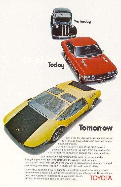 5.Toyota EX – 2. Cóż za wyczucie przyszłości! To małe, dwuosobowe auto ukazało się dość dawno temu, bo już w roku 1969 ale producenci potrafili dostrzec potrzeby przyszłości, by na rynek trafiały małe, miejskie auta. Niestety w 1969 roku na ten pomysł było zdecydowanie za wcześnie. Samochód nigdy nie trafił do seryjnej produkcji.