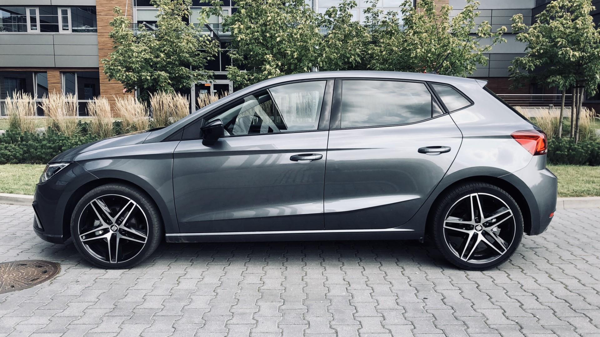 Z boku auta dzieje się już dużo więcej. Najbardziej rzucającą się zmianą są felgi – tu w standardzie są 17-calowe alufelgi (nasz egzemplarz ma opcjonalne 18-ki). Zwykła Ibiza wyjeżdża z salonu na 15-calowych felgach stalowych. Idąc dalej, zauważymy lusterka lakierowane na kolor czarny. Ci najbardziej spostrzegawczy dostrzegą jeszcze jeden detal – słupek B. W zwykłej Ibizie jest on wykończony czarnym, matowym plastikiem, z kolei w FR – również jest czarny, ale błyszczący.