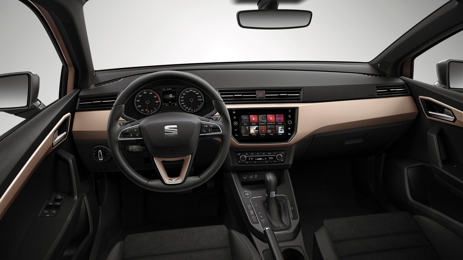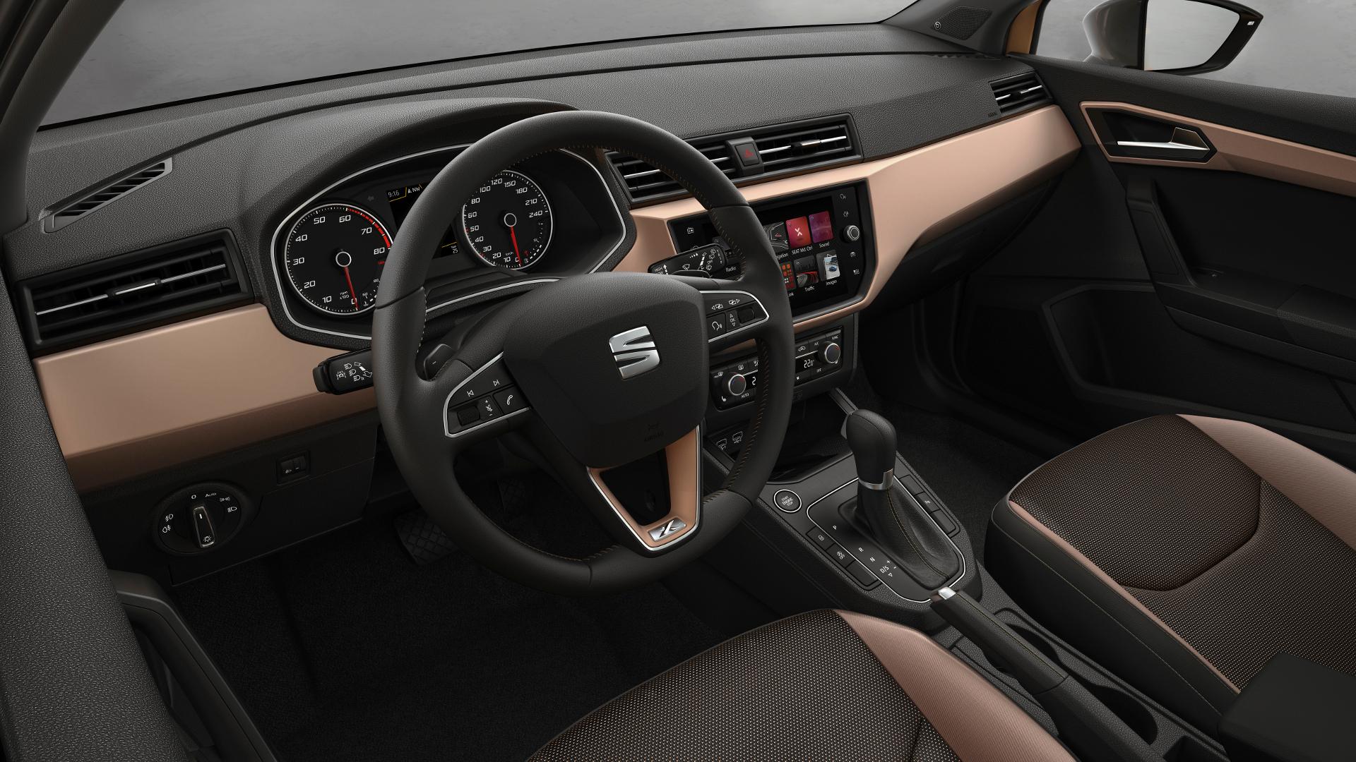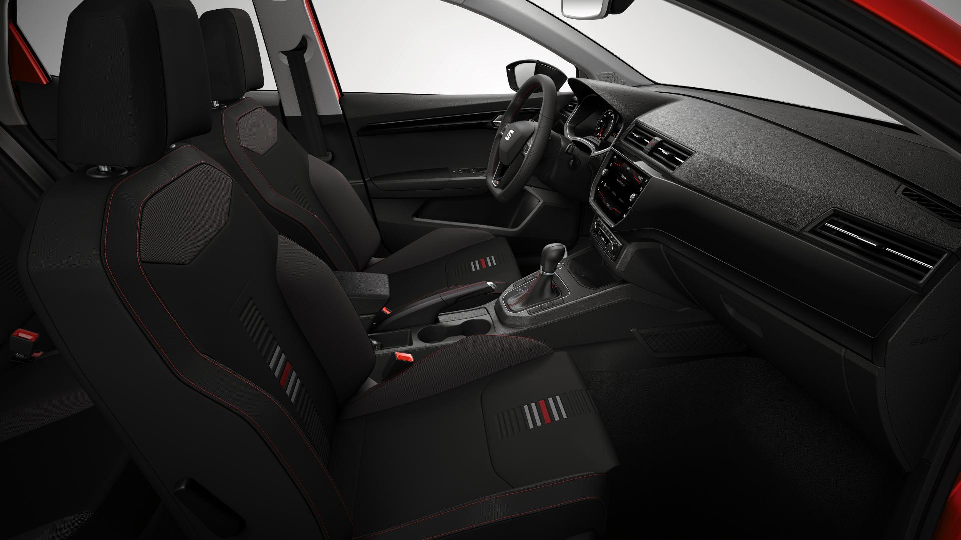 Wszystkie Ibizy miały dość prosty układ wnętrza i piąte wcielenie nie odbiega od tego schematu. Proste czyste linie podkreślają funkcjonalność i prostotę obsługi, typową dla samochodów koncernu Volkswagena. Jednocześnie LED-owe podświetlenie wnętrza o zmiennym kolorze i deski rozdzielczej jest przejawem nowoczesności, której autu odmówić nie można. W bogatszych wersjach wyposażeniowych dostępny będzie 8-calowy dotykowy ekran systemu multimedialnego, obsługujący funkcję Full Link. W wersji FR kierownica jest podcięta u dołu, a tapicerka została zaopatrzona w czerwone elementy wykończenia.