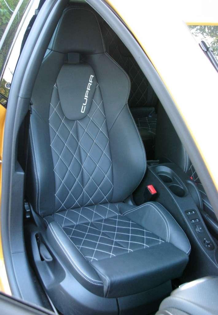 Bardzo sztywne zawieszenie dba o prawidłowy tor jazdy, a wspiera je w tym mocno elektronika. Oczywiście jest system stabilizacyjny ESP, system kontroli trakcji TCS i wspomaganie awaryjnego hamowania EBA. Cupra ma także elektroniczną blokadę mechanizmu różnicowego XDS, która wykorzystuje system ESP do tworzenia takiego efektu jaki daje mechaniczna blokada – przyhamowując koła po wewnętrznej stronie łuku, przez co zapobiega ślizganiu się ich na zakrętach i zmniejsza podsterowność. Chciałoby się wsiadać i gnać, ale to oznacza uświadomioną potrzebę równego asfaltu.