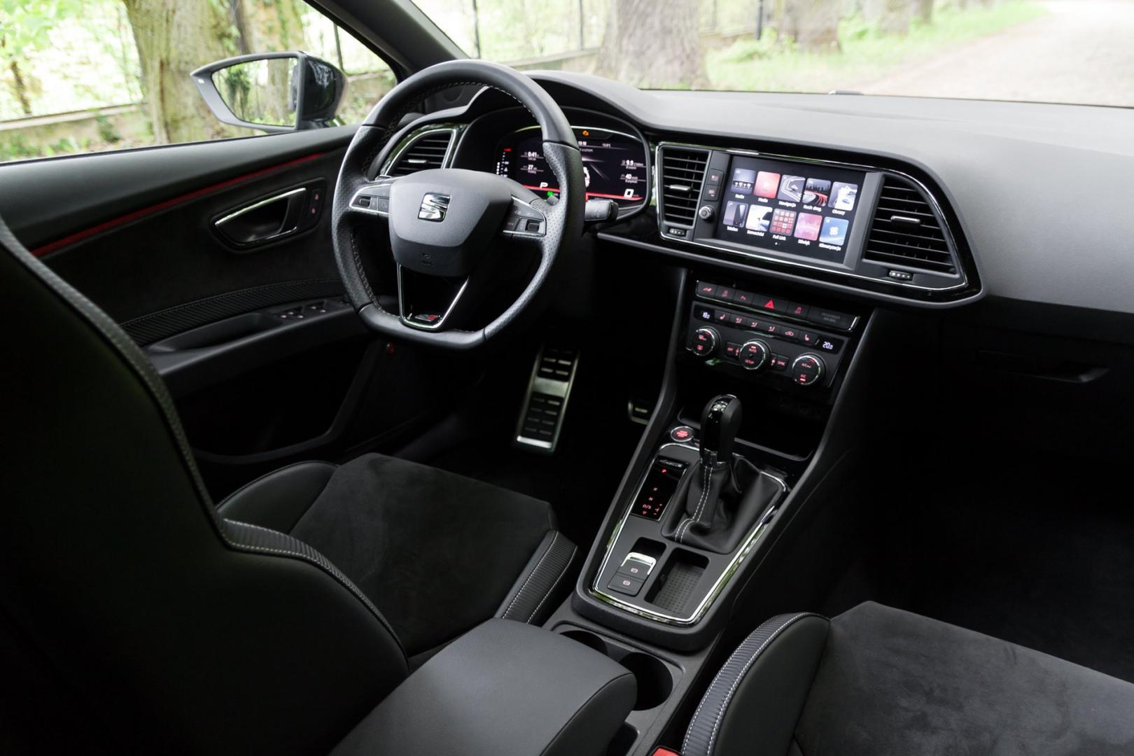 Cupra Carbon na tle swoich słabszych odmian wyróżnia się paroma detalami. Jak sama nazwa wskazuje po całym nadwoziu rozsiano kilka lotek i dodatków wykonanych z kompozytów węglowych, a z tyłu pojawia się inny dyfuzor z czterema końcówkami zmodyfikowanego układu wydechowego. Standardowo dostajemy tutaj także pakiet Performance, w skład którego wchodzą 19–calowe felgi aluminiowe oraz nieco większe hamulce Brembo. Tarcze z przodu mają 370 mm średnicy, a z tyłu 310 mm, czyli dokładnie tyle samo co w Cuprze R. Dla osób „siedzących” w temacie, odróżnienie limitowanej edycji Leona od pozostałych nie będzie wielkim problemem, jednak dla innych zadanie to może nie być aż tak proste.