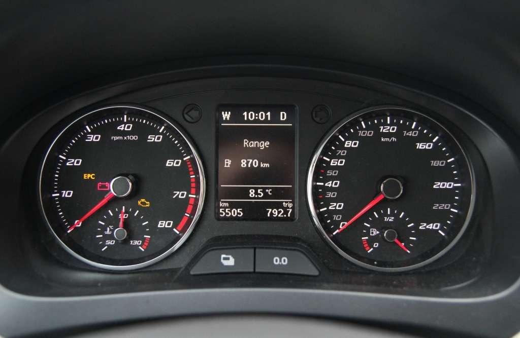 Spory zapas momentu obrotowego pozwala sterownikowi skrzyni na korzystanie z niskich obrotów. To ważne, gdyż od 3500 obr./min silnik staje się słyszalny. Niestety wyposażenie nie obejmuje łopatek do ręcznej zmiany przełożeń. Wbrew pozorom nie są wyłącznie gadżetem dla fanów motorsportu – ułatwiają redukcję biegów przed rozpoczęciem wyprzedzania i usprawniają hamowanie silnikiem. W Toledo biegi można wybierać tylko lewarkiem.