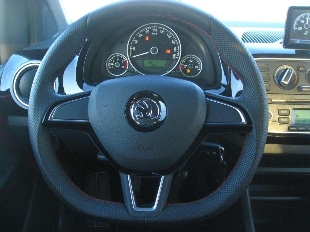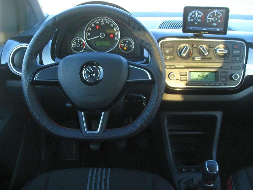 Zostańmy więc z przodu. Obsługa Citigo jest wręcz banalnie prosta. Wszystkie przełączniki są pod ręką. Do tego jest ich dosłownie kilka; sterowanie klimatyzacją, radio, sterowanie elektrycznie opuszczanymi przednimi szybami, światła, wycieraczki i tyle. Pełen minimalizm i czysta forma, żadnych udziwnień ale jednocześnie niewiele fantazji w projekcie. Dobrze, że Monte Carlo ma przynajmniej lakierowaną na czarno, znaną z Volkswagen Up!, środkową część deski rozdzielczej. Wsiadając pierwszy raz do Citigo w zasadzie od razu wiemy co gdzie jest i do czego służy. Jakość wykonania jest zadowalająca i adekwatna do klasy auta. Plastiki są twarde ale dobrze spasowane. Fotele wygodne z szerokim zakresem regulacji, nie ma problemu ze znalezieniem właściwej pozycji za kierownicą.