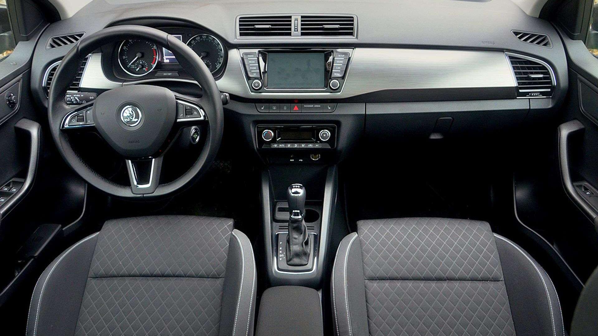 Kokpit wykonany jest niestety z bardzo twardych materiałów, jednak podobnie jak w kuzynie Czeszki, Volkswagenie Polo, wszystkie elementy są bardzo dobrze spasowane, nic tu nie wydaje niepotrzebnych dźwięków. Jedynym akcentem ożywiającym smutne wnętrze jest pas przypominający szczotkowane aluminium. Skoda obiecała nam, że już wkrótce będzie można nadrukować w tym miejscu dowolne zdjęcie, które najprawdopodobniej zostanie umieszczone na specjalnej folii.