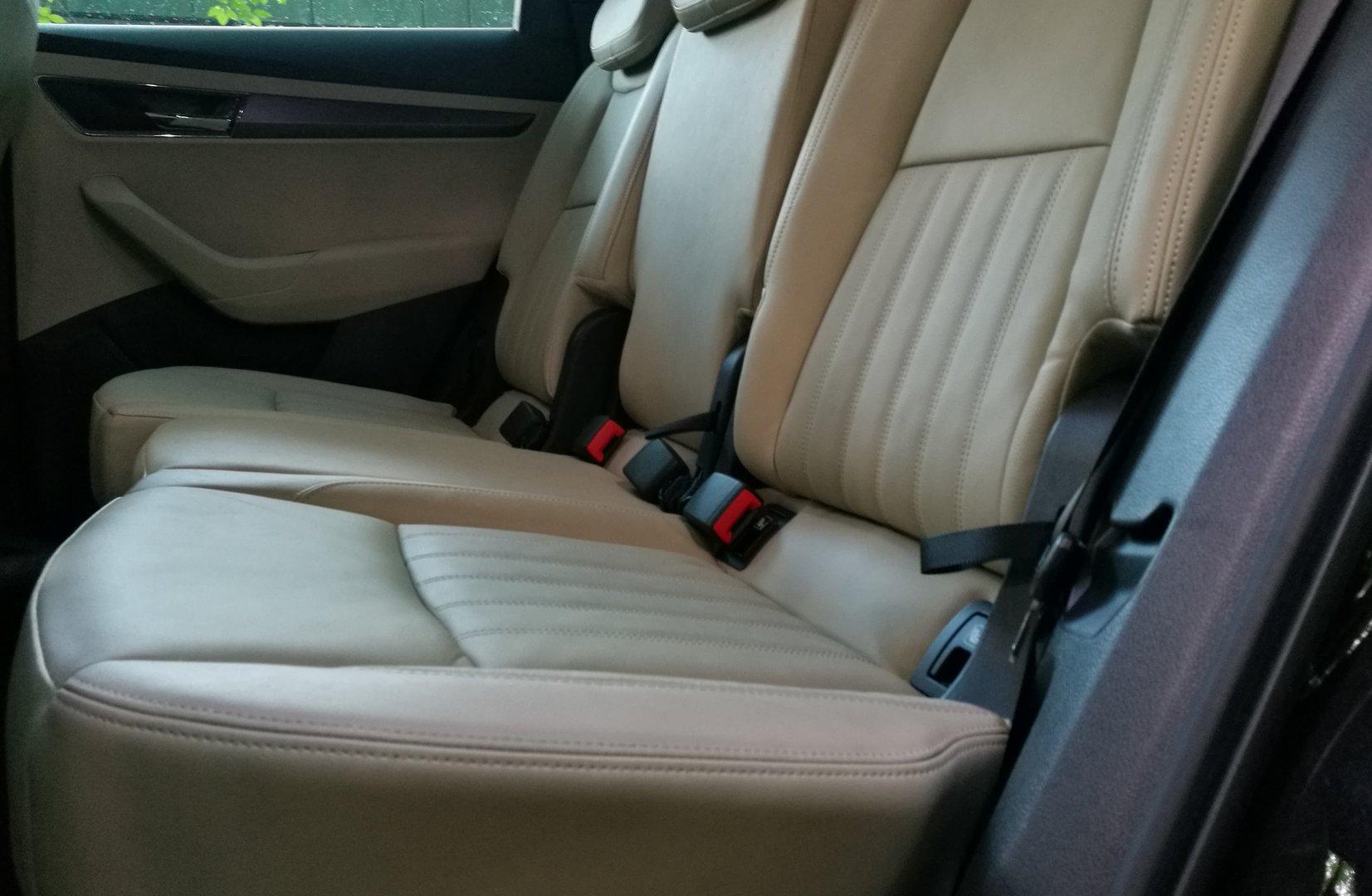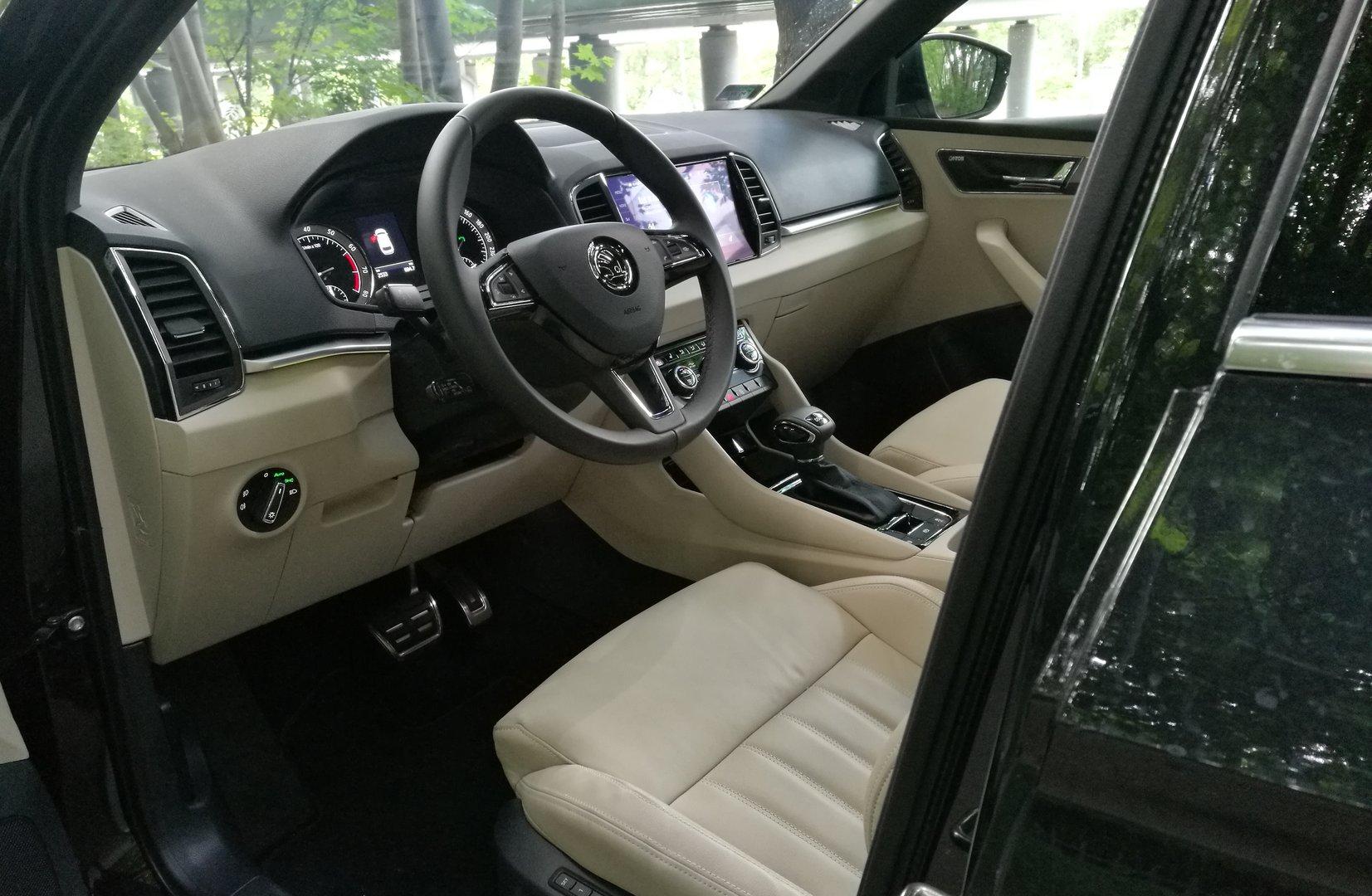 Karoq trochę gorzej wypada w kwestii wyposażenia dodatkowego. Brakuje tu chociażby wentylacji foteli czy trójstrefowej klimatyzacji, za to w podstawie dostajemy automatyczną, dwustrefową klimatyzację. W większym Kodiaqu podstawą jest klimatyzacja manualna.