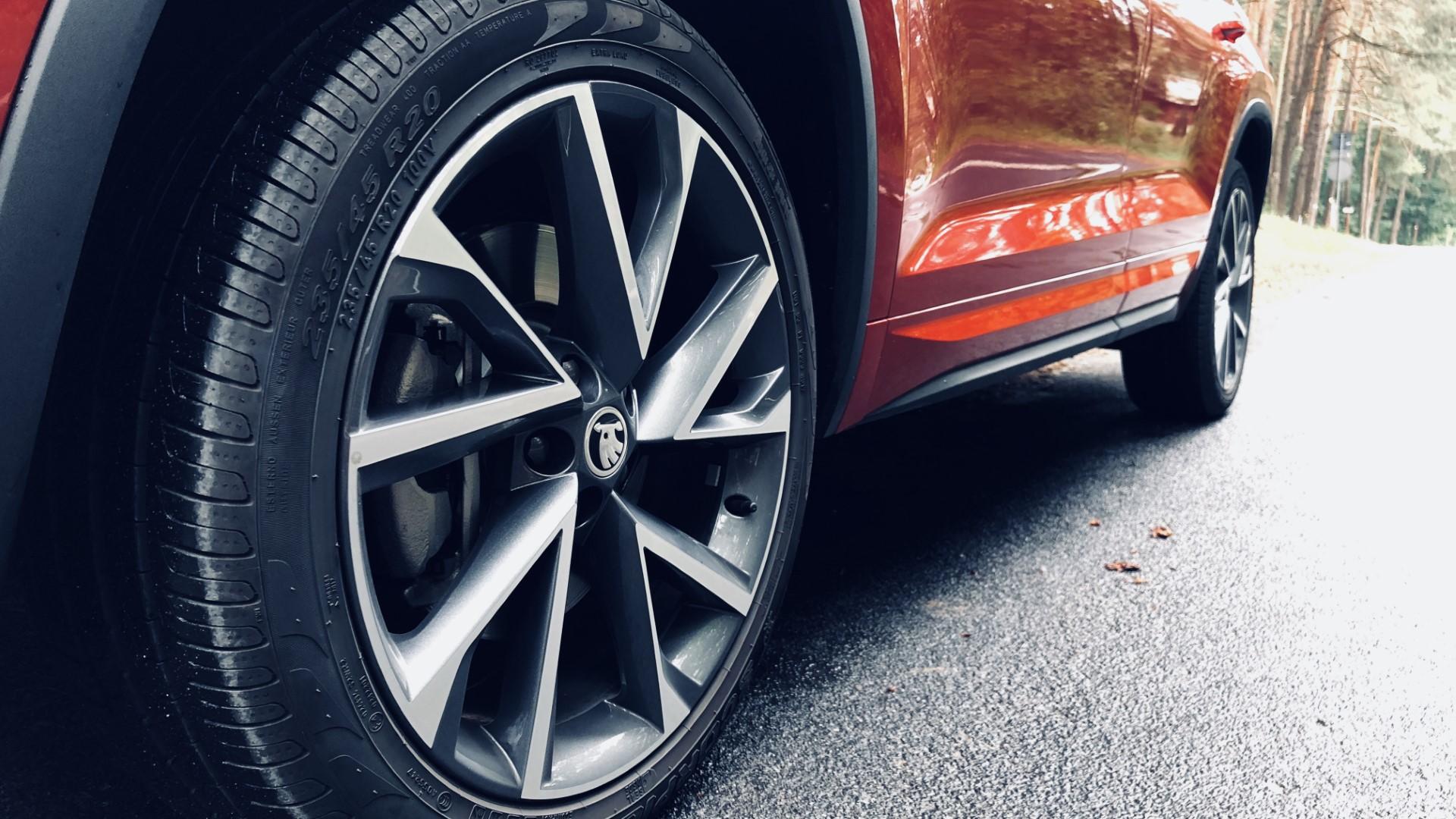 Niestety, w podstawie Kodiaq nie prezentuje się tak dobrze jak nasza testowana wersja. Aby uzyskać taki efekt finalny, musimy wyłożyć dodatkowo 3 tys. zł za lakier „Velvet” i 2,6 tys. zł za 20-calowe alufelgi (w standardzie dostaniemy cal mniejsze).