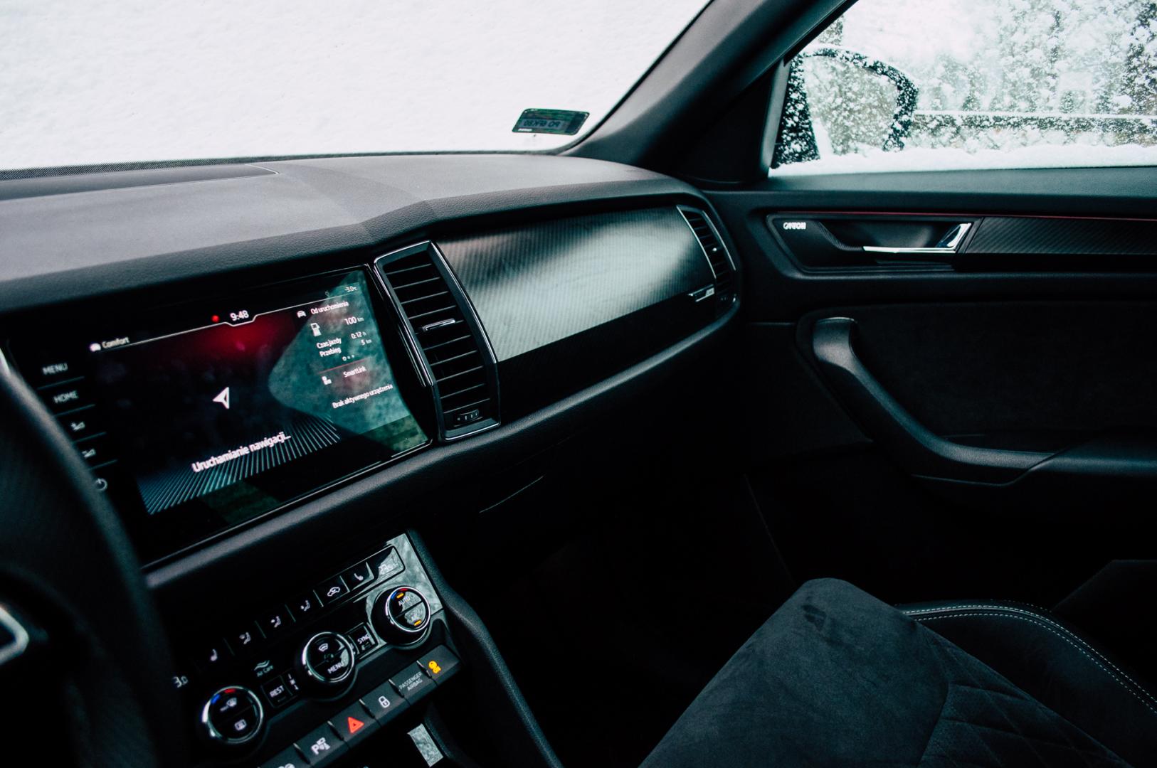 Zazwyczaj sportowe odmiany modeli samochodów nie są kojarzone z jazdą w terenie. Sportline, pomimo sportowych dodatków, nie został pozbawiony właściwości terenowych, które są charakterystyczne dla wszystkich wersji Kodiaqa. Pierwszy raz sprawdziłem to, gdy spotkałem się z tym samochodem w mroźnej Laponii, testując go w naprawdę wymagających warunkach. Ponownie utwierdził mnie w tym przekonaniu później, podczas wyjazdu do Zakopanego. Udowodnił, że śnieg i brak asfaltu nie są dla niego problemem. Napęd 4x4 oraz wystarczający prześwit zapewniają komfortowe podróżowanie także na mniejszych, nieutwardzonych drogach. Oczywiście, musimy wziąć pod uwagę fakt, że to SUV, a nie terenówka, więc o bardziej wymagającym terenie nie ma mowy.