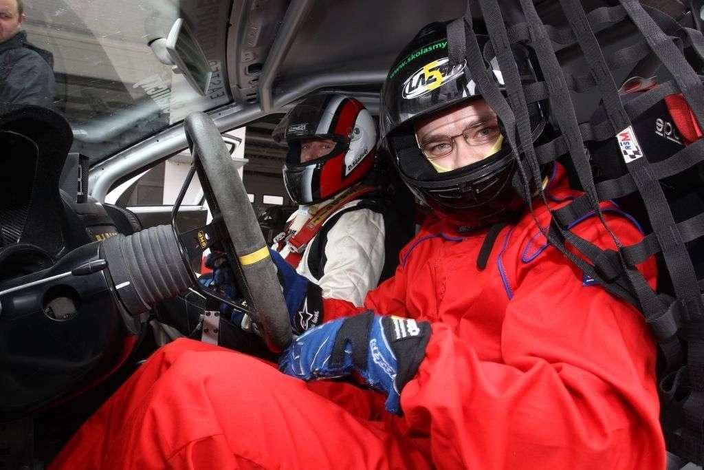 „Pajechali” – w Rosji tego dnia hucznie świętowano 50-lecie wysłanie Gagarina w kosmos, a ja nie mniej hucznie usiłowałem wyjechać z boksu. Pierwszy raz w aucie rajdowym… można wybaczyć niewiedzę… nikt mi nie powiedział, że aby rajdówką ruszyć na pierwszym biegu, to trzeba utrzymywać obroty powyżej 4000/min – w przeciwnym wypadku, obojętnie jak delikatnie obchodzę się ze sprzęgłem, silnik gaśnie. Po trzeciej próbie udało się i … gdyby Gagarin miał wybór pomiędzy lotem w kosmos, a przejażdżką tym autem na torze, to bohaterem imprezy sprzed 50 lat zostałby German Titow.