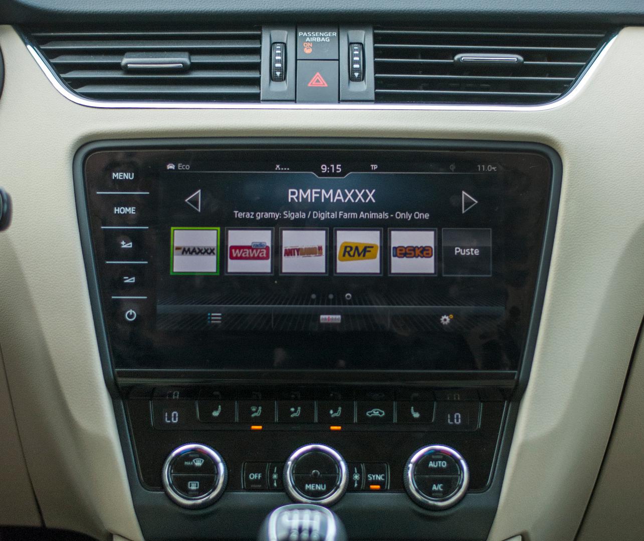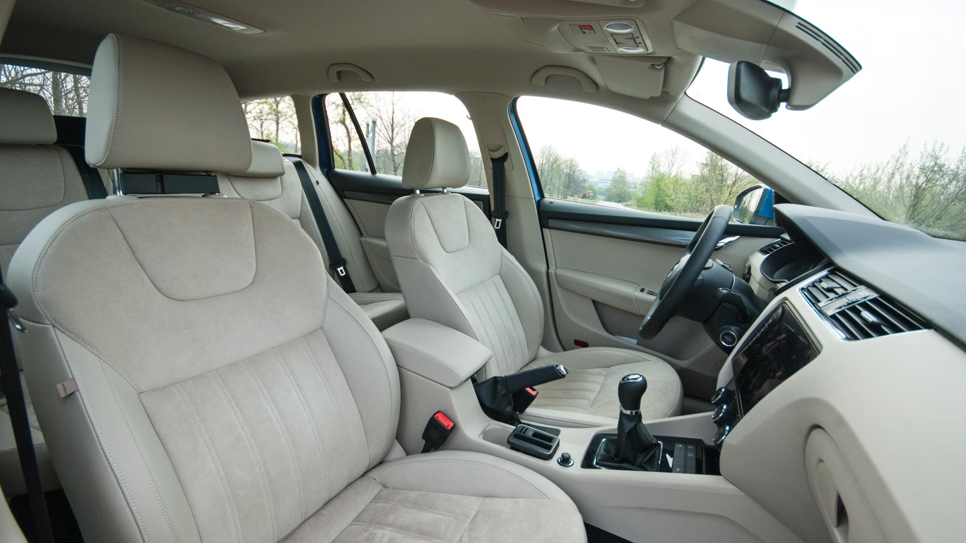 Nadwozie Skody jest mniej więcej tak samo niepozorne jak jej wnętrze. Jednak w odświeżonej wersji chyba największą zmianą w stosunku do poprzedników są klamki. Mają ciekawy kształt, są wygodnie wyprofilowane, jednak problemem może być ich ulokowanie. Sprawiają wrażenie jakby na siłę chciały być ułożone w jednej linii z elegancką listwą w obiciu drzwi, co z kolei sprawia, że klamka jest nieco za wysoko. Mimo wszystko to prawdopodobnie jedyny element kokpitu, który wymaga szczególnego przyzwyczajenia. Wszystko inne znamy bardzo dobrze z pozostałych modeli Skody. Kabina jest przestronna, choć nieco wąska, co ma swoje zalety. Nieco napompowana deska rozdzielcza szczelnie wypełnia przód kokpitu, jednocześnie dając dobry dostęp do wszystkich funkcjonalności, często nawet bez konieczności odrywania pleców od oparcia. Do czego można się przyczepić? Pomocniczy ekranik pomiędzy zegarami wyświetla informacje ładnie i czytelnie, jednak “dokopanie” się do konkretnych danych lub opcji wyświetlania zajmuje sporo czasu. Dużo opcji, spora funkcjonalność, jednak być może wystarczyłoby tylko kilka podstawowych ekranów? Za to na plus: trzymanie boczne przednich foteli, przesuwny podłokietnik, gruba wygodna kierownica.