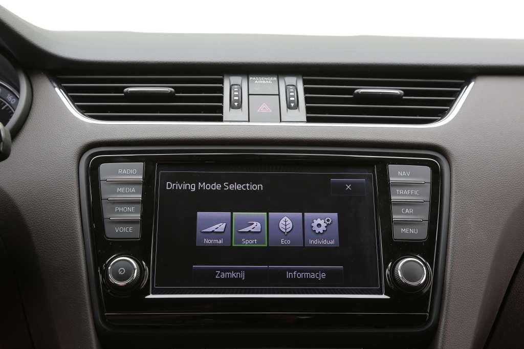 Świetnie zestrojone zawieszenie oraz ogumienie w rozmiarze 225/40 R18 sprawdzają się przy żwawej jeździe. Octavia jest stabilna, przewidywalna i długo nie pozwala sobie na podsterowność. Felgi o dużej średnicy nie ograniczają komfortu resorowania. Więcej komfortu czy więcej sportu? Wybór należy do klienta. Kierowcy o dynamicznym usposobieniu mogą zainwestować 600 zł w pakiet złożony z utwardzonego zawieszenia oraz systemu XDS, czyli elektronicznej blokady mechanizmu różnicowego, która przez hamowanie odciążonego, wewnętrznego do łuku koła przekazuje siły napędowe na zewnętrzną oponę. Na rekomendację zasługuje pakiet Amazing. Za 6950 zł otrzymamy nawigację Columbus z 8-calowym ekranem, Phone box – wzmacniający sygnał GSM schowek na tunelu środkowym, podgrzewane fotele, przyciemniane szyby tylne i podgrzewaną szybę czołową. Warto również odżałować 350 zł ma kolorowy wyświetlacz komputera pokładowego oraz 400 zł na gniazdo 230V.